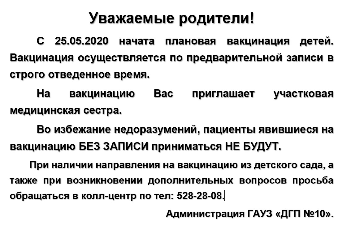 В связи с подъемом заболеваемости корью в стране и в том числе в Татарстане в поликлинике проводится вакцинация, ревакцинация кори, детям не имеющим прививку от кори. За информацией обращаться к иммунологу, к участковым педиатрам, врачам школ и детских садов. По календарю прививки проводятся в 1 год и 6 лет.