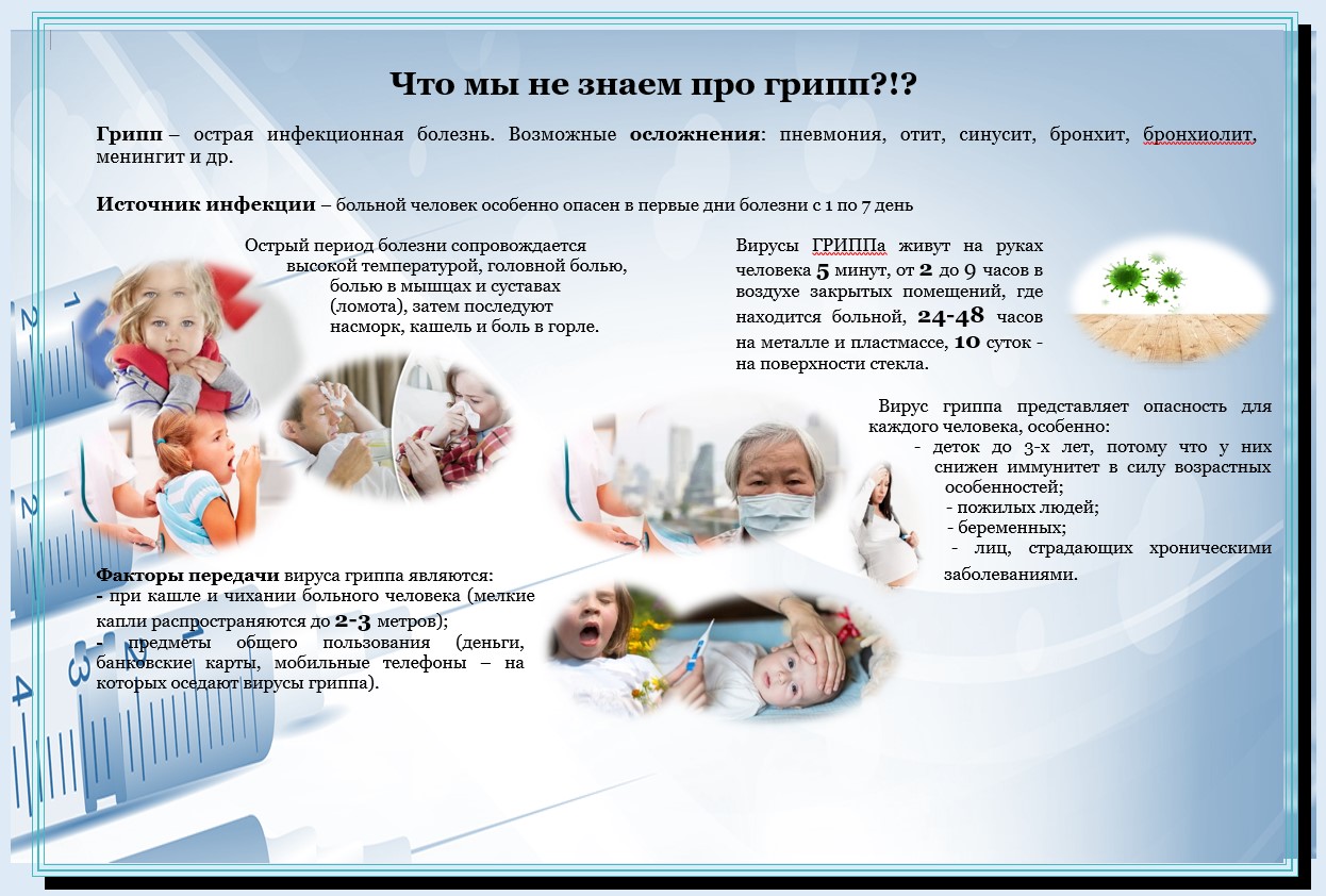 По данным ВОЗ, гриппом заболевает каждый десятый взрослый и каждый третий ребенок, а каждый седьмой заболевший получает серьезные осложнения. Мировой и отечественный опыт борьбы с гриппом показывают, что вакцинопрофилактика является высокоэффективным и высокоспецифическим методом профилактики гриппа. Читать в источнике