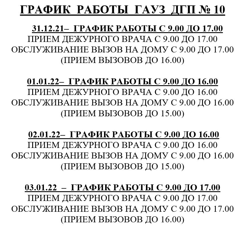 ГРАФИК РАБОТЫ ГАУЗ ДГП № 10
