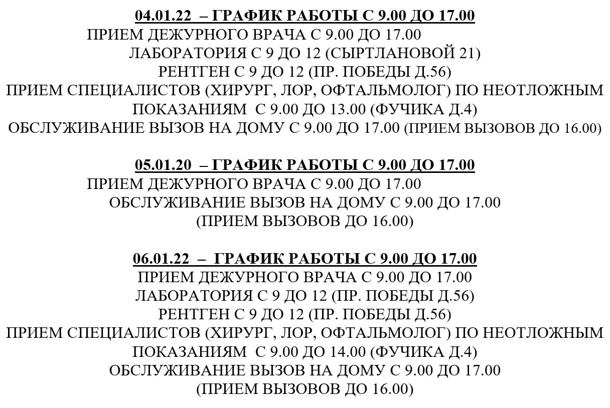 01.01.22– ГРАФИК РАбОТЫ С 9.00 ДО 16.00