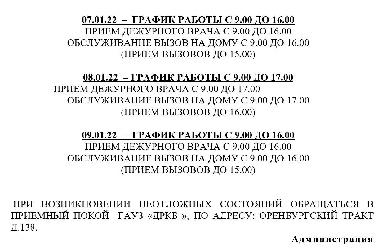 07.01.22 – ГРАФИК РАбОТЫ С 9.00 ДО 16.00