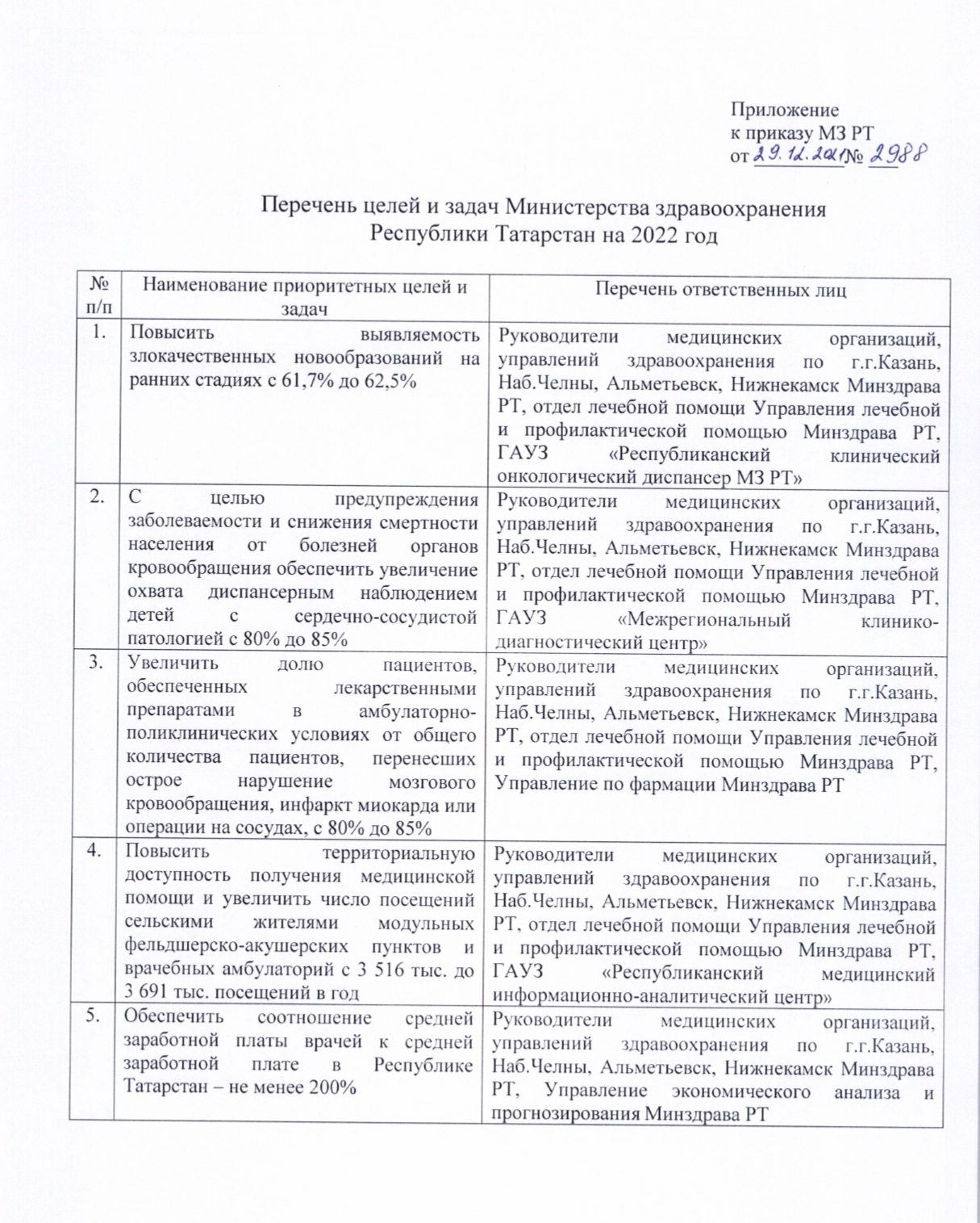 Перечень целей и задач Министерства Здравоохранения РТ на 2022 год