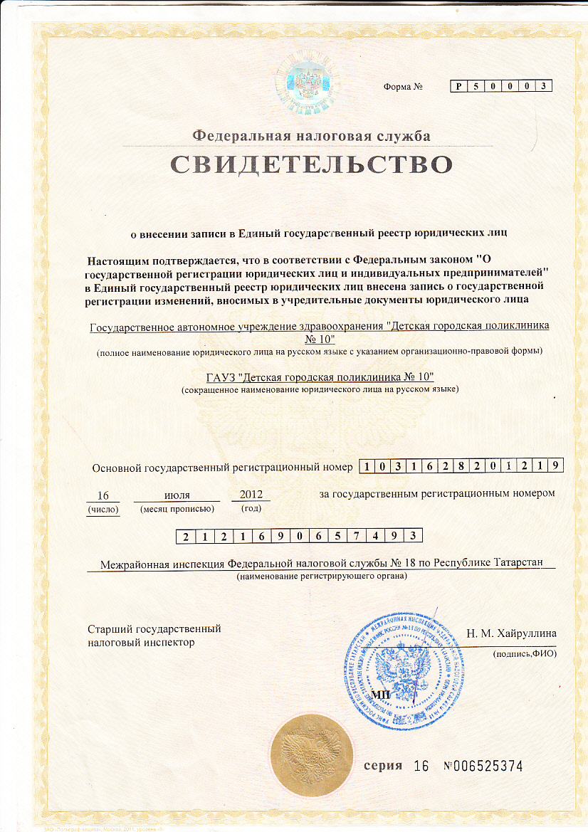 Государственного автономного учреждения здравоохранения «Детская городская поликлиника № 10» г. Казани