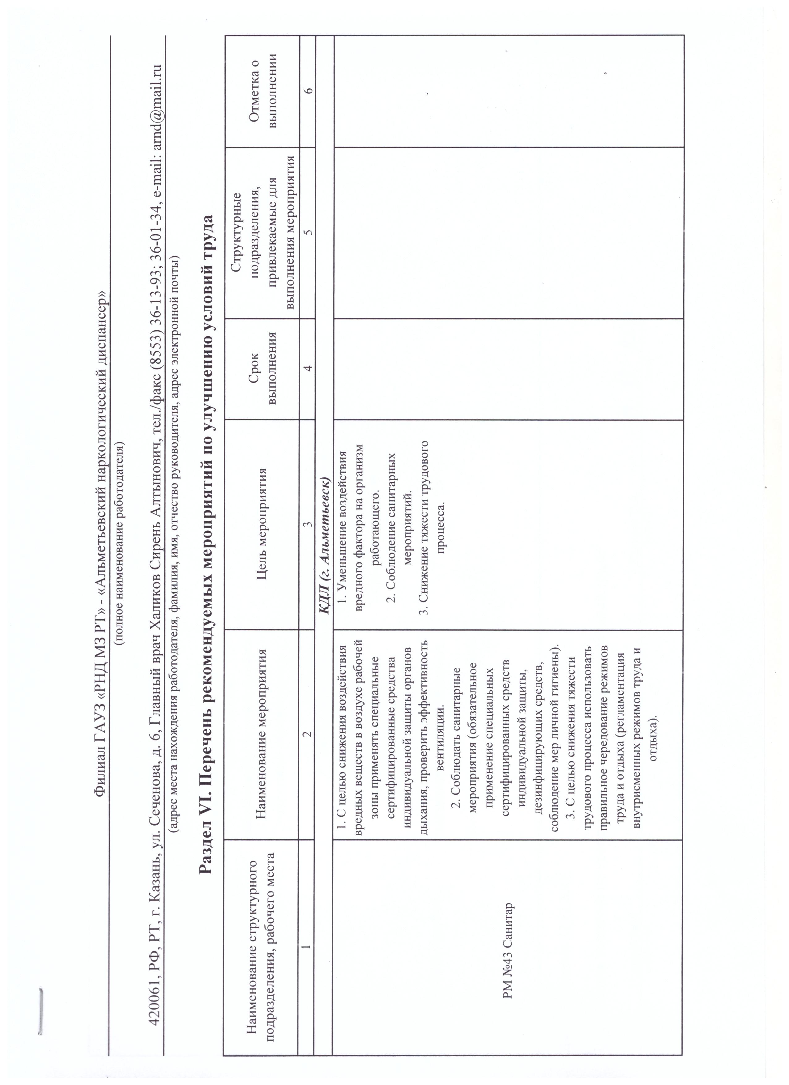 Перечень рекомендуемых мероприятий по улучшению условий труда 2 часть