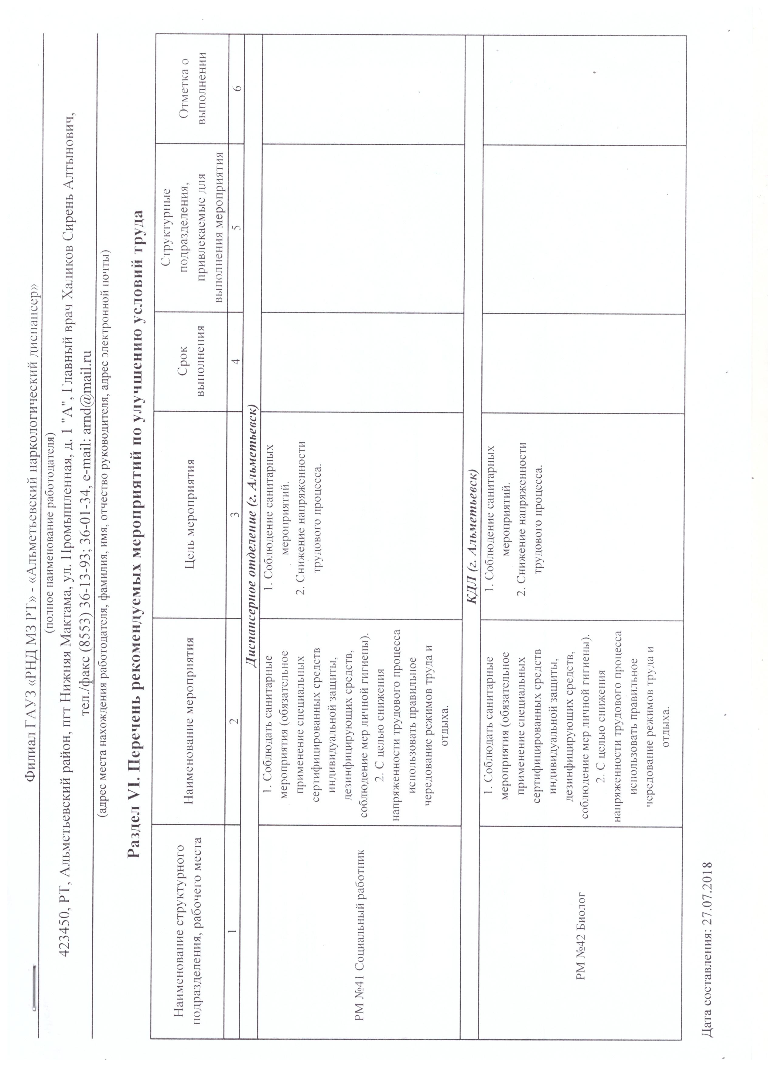 Перечень рекомендуемых мероприятий по улучшению услови1й труда