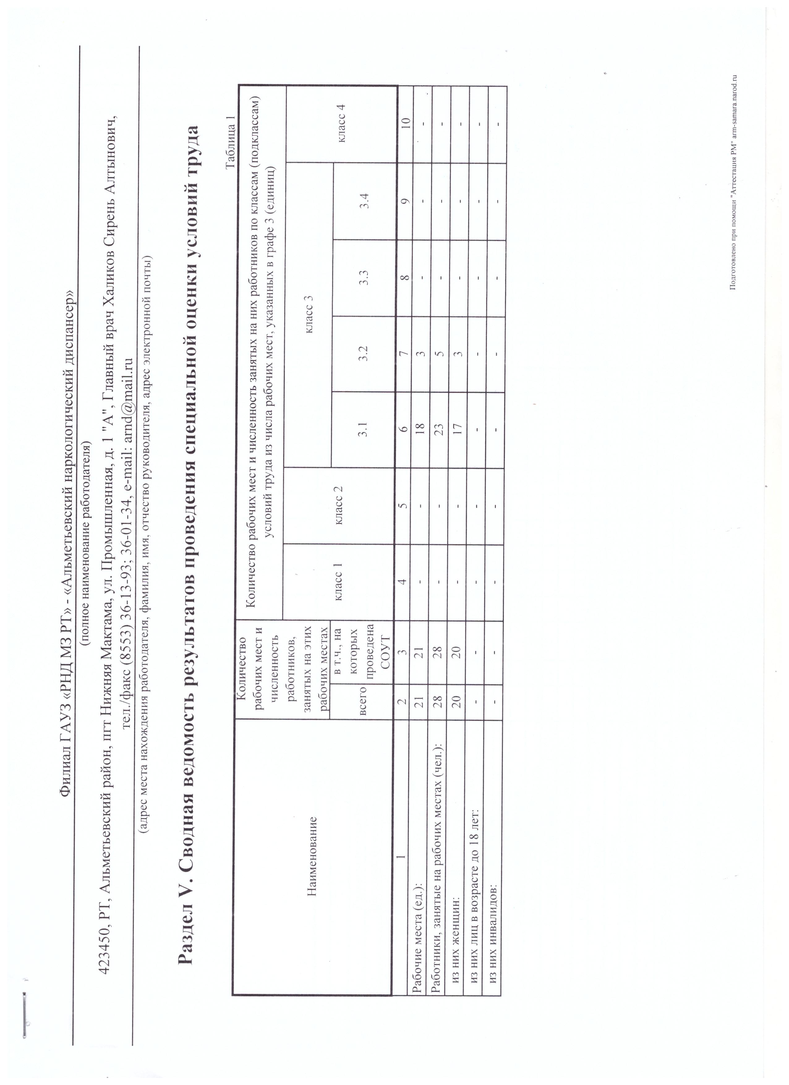 Сводная ведомость результатов проведения специальной оценки условий труда