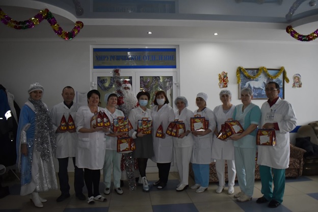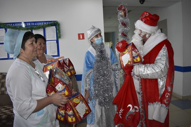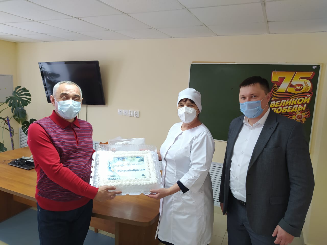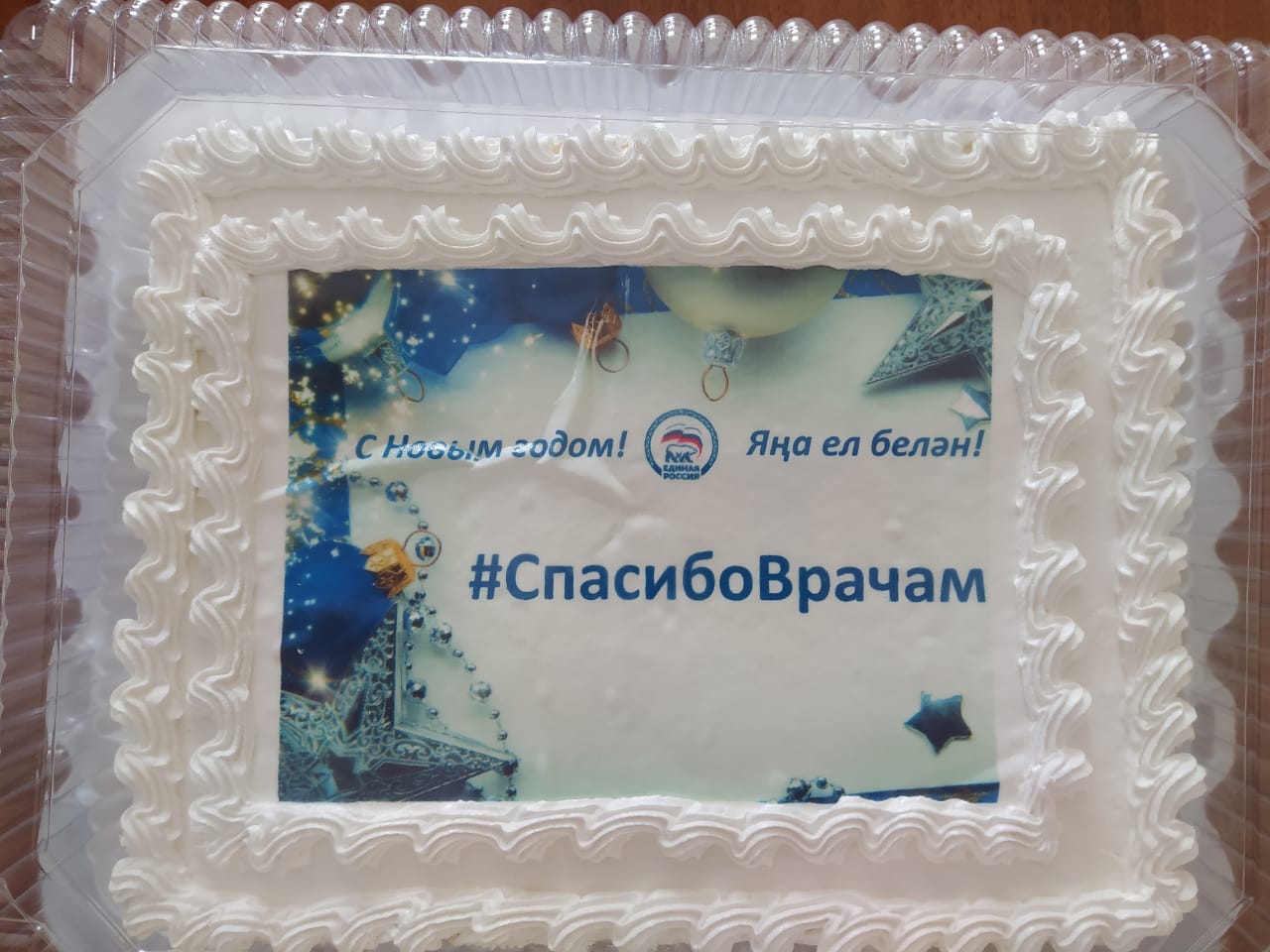 Для врачей, дежурящих в новогоднюю ночь единороссы вручили торт.