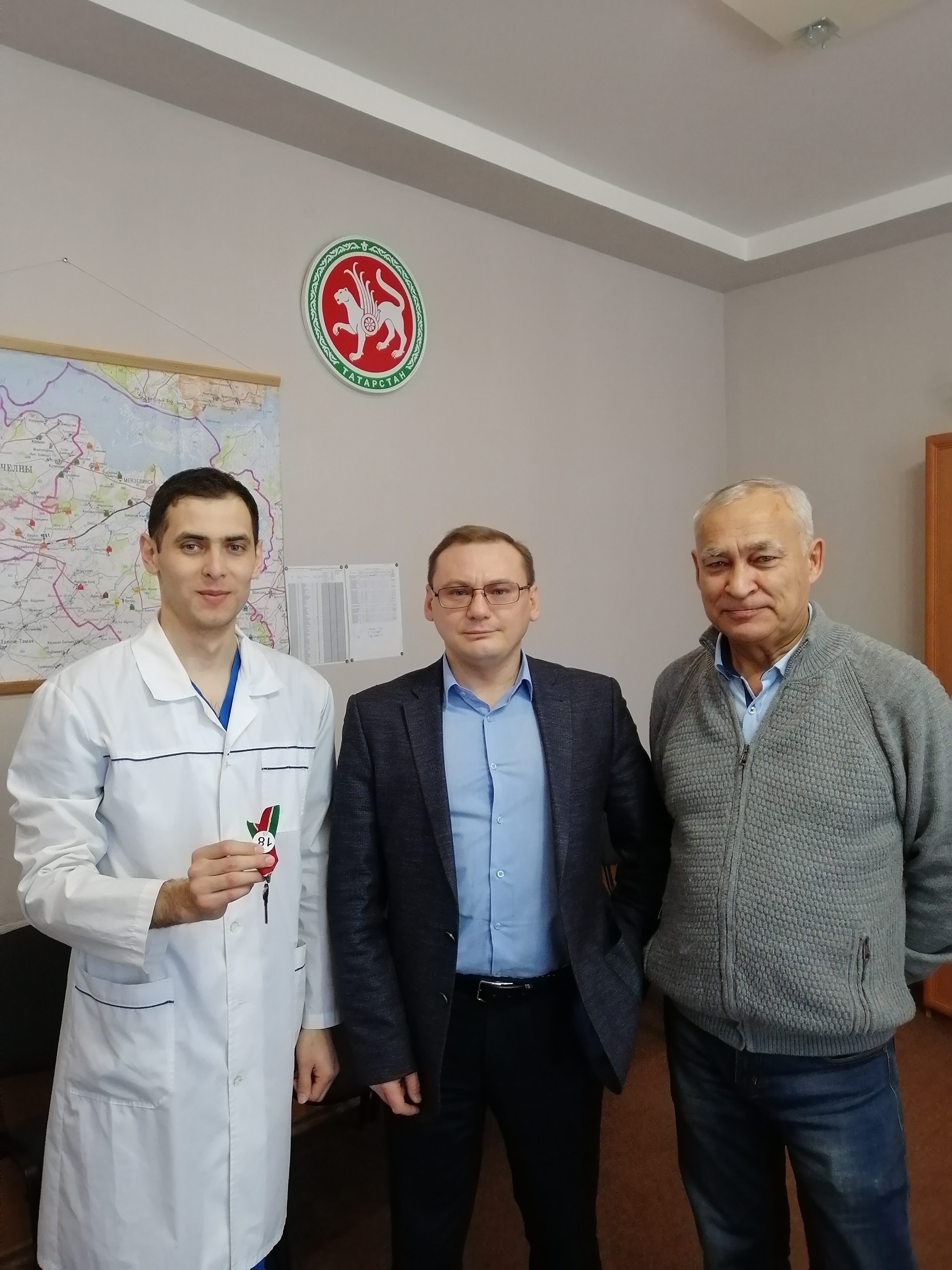 В ГАУЗ «Мензелинская ЦРБ» главный врач Наиль Азатович Мубаракшин вручил ключи от квартиры молодому врачу-хирургу Саетову Салавату Айдаровичу.