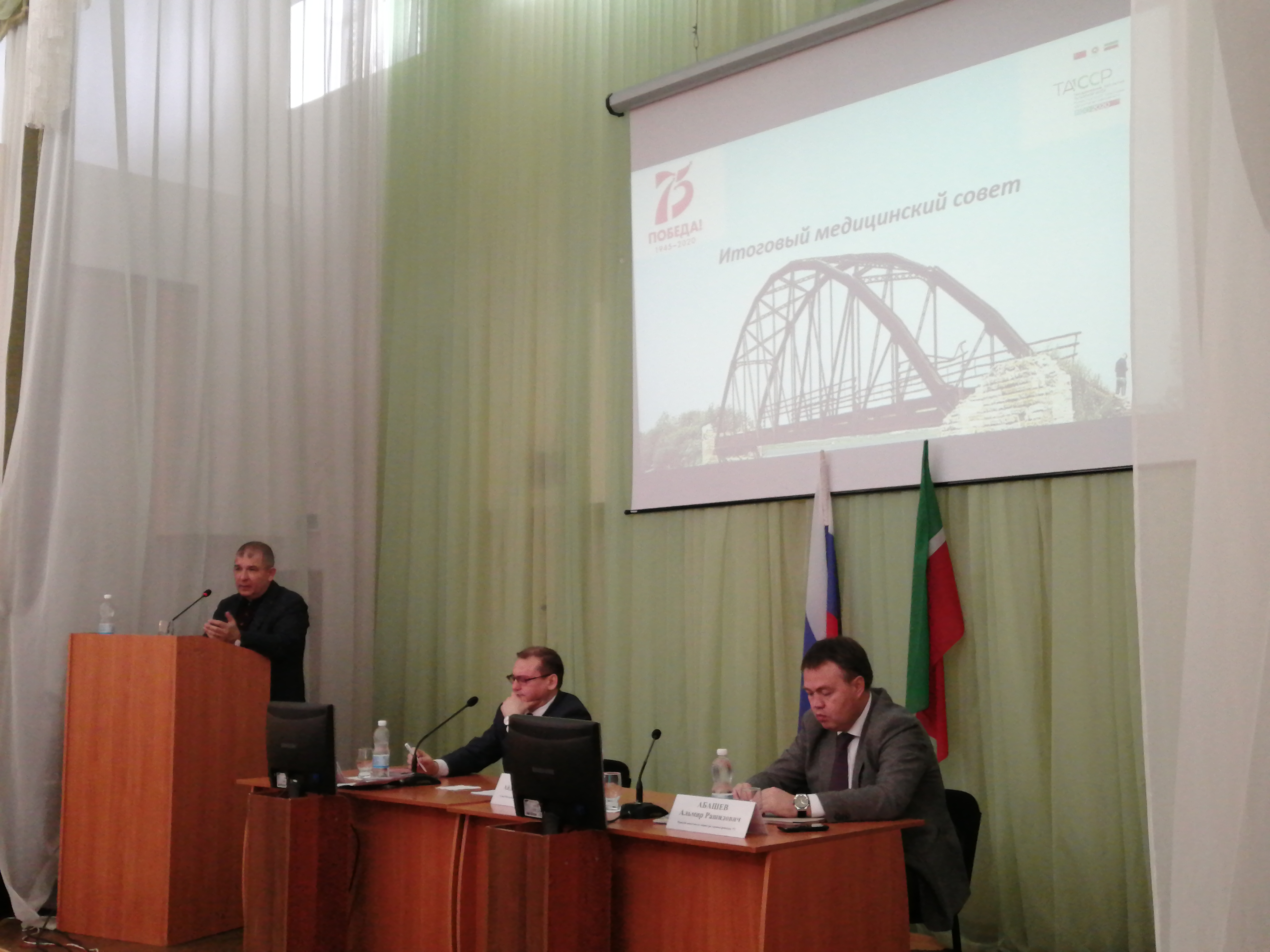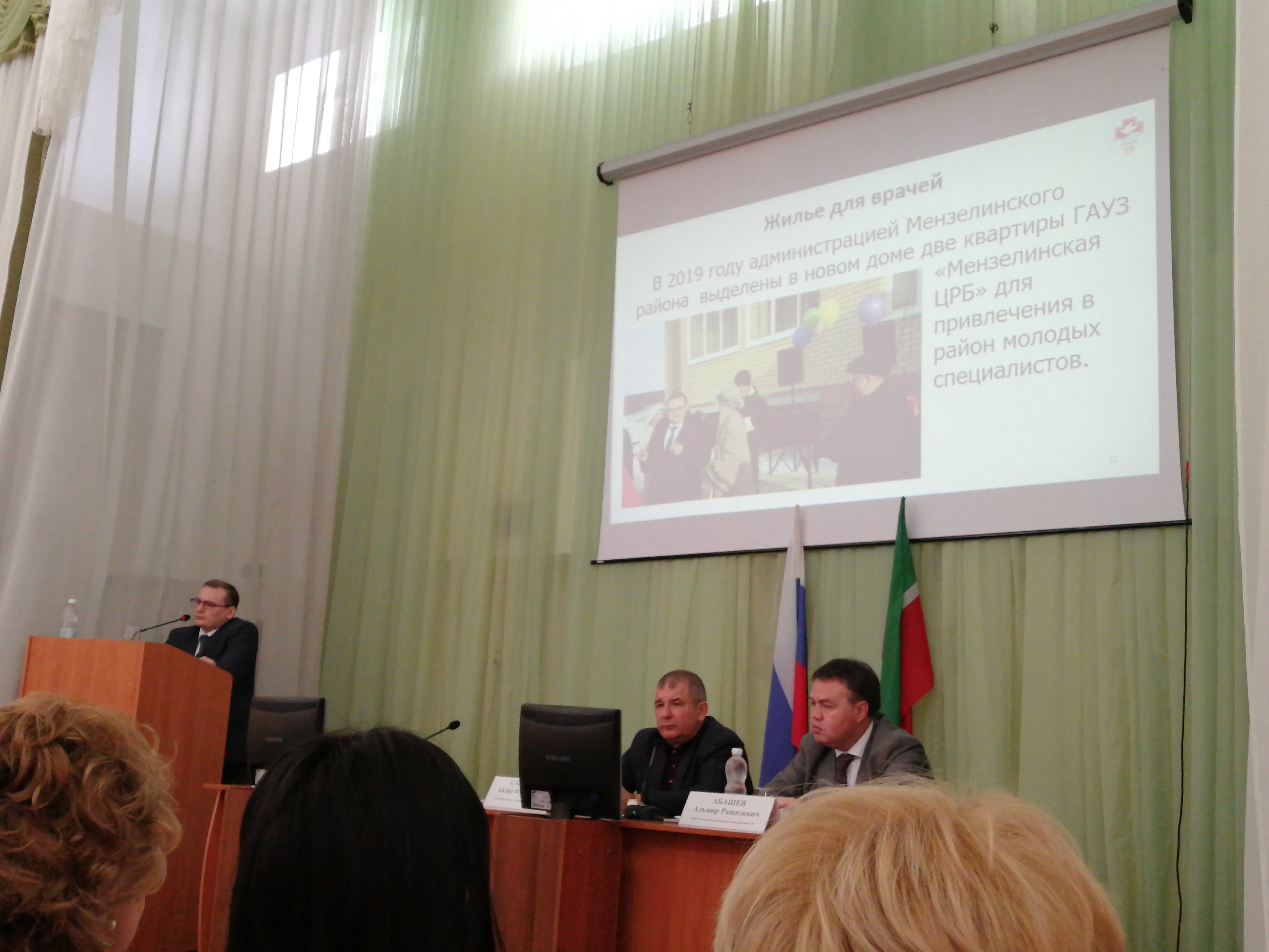 7 февраля 2020 года в актовом зале Дома детского творчества города Мензелинска состоялся медицинский совет по итогам 2019 года. В нем приняли участие глава Мензелинского муниципального района Айдар Фаслахович Салахов, первый заместитель министра здравоохранения РТ Альмир Рашидович Абашев, главный врач ГАУЗ «Мензелинская ЦРБ» Наиль Азатович Мубаракшин.