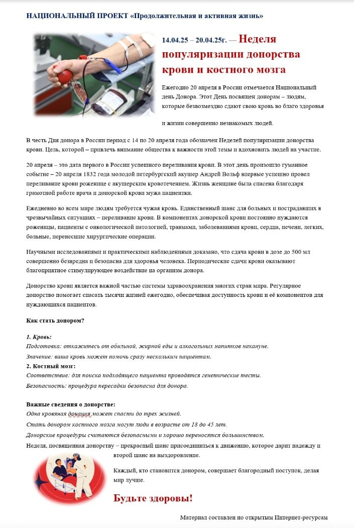 Неделя популяризации донорства