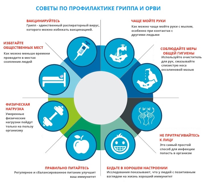 ВОЗ рекомендует: -мыть руки, ограничить контакт с заболевшими, отказаться от посещения общественных мест. Играют роль ношение масок, максимальное пребывание на воздухе, прием поливитаминов.