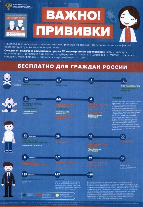Уважаемые жители, если вы относитесь к категории взрослых от 18 до 35 лет (включительно), не болевшим, не привитым, привитым однократно, не имеющим сведений о прививках против кори и к категории взрослых от 36 до 55 лет (включительно), относящихся к группам риска (работники медицинских и образовательных организаций, организаций торговли, транспорта, коммунальной и социальной сферы; лица, работающие вахтовым методом, и сотрудники гос. контрольных органов в ПП через гос. границу РФ), не болевшим, не привитым, привитым однократно, не имеющих сведений о прививках против кори, вам необходимо подойти в поликлинику по месту прикрепления для иммунизации!