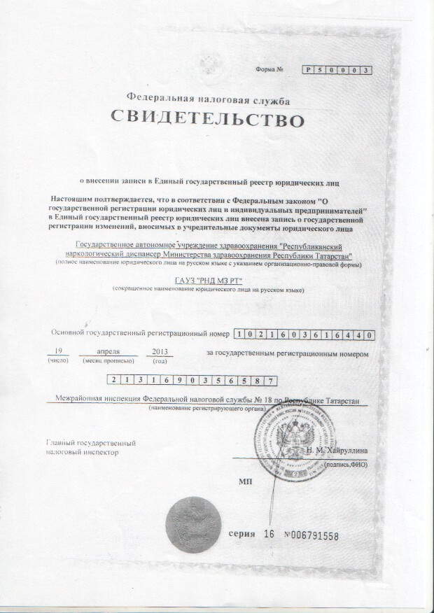 Полное наименование - Филиал государственного автономного учреждения здравоохранения «Республиканский наркологический диспансер Министерства здравоохранения Республики Татарстан» - Набережночелнинский наркологический диспансер.