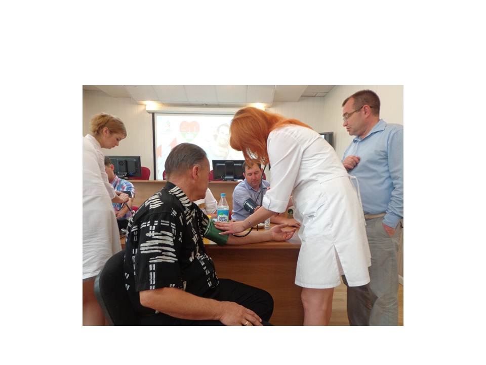 Работникам предприятия, подлежащим диспансеризации 1 раз в 3 года, было проведено анкетирование, антропометрия, забор анализов крови, измерение артериального и внутриглазного давления, электрокардиография, осмотр и консультация врачей общей практики по факторам риска развития хронических неинфекционных заболеваний.