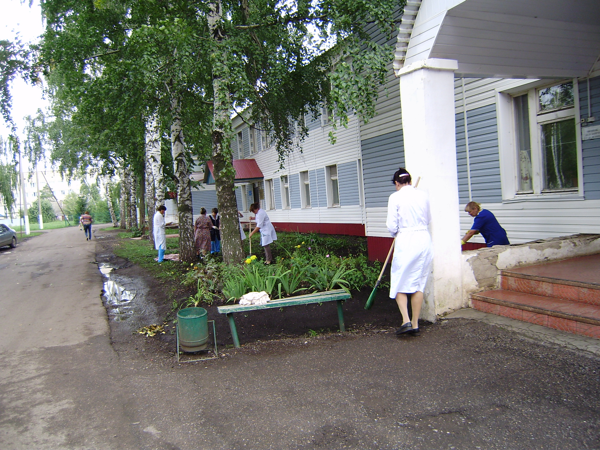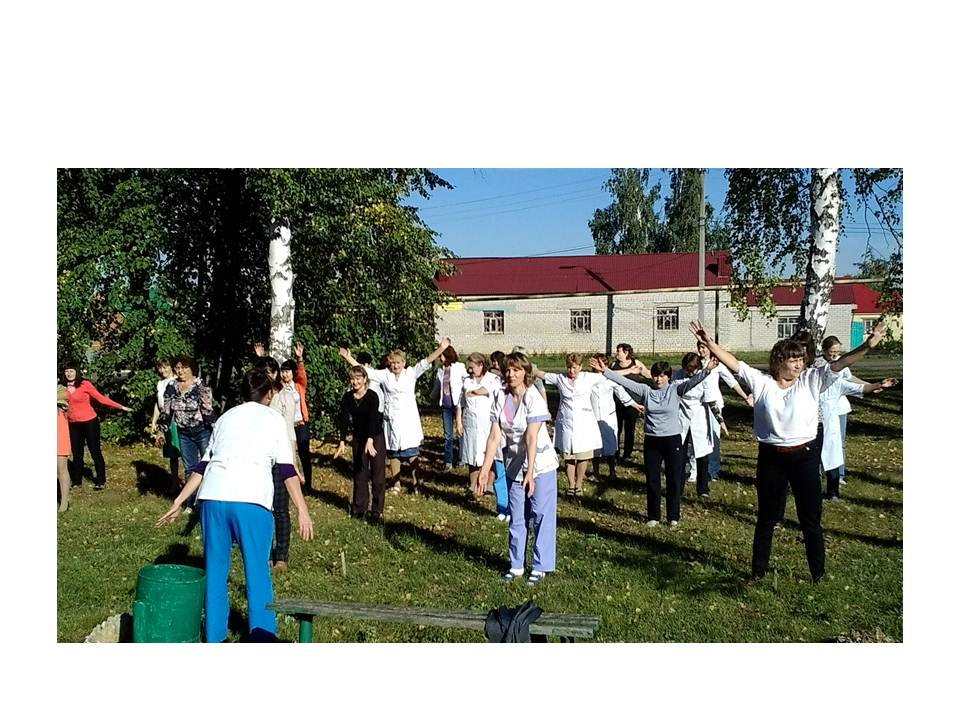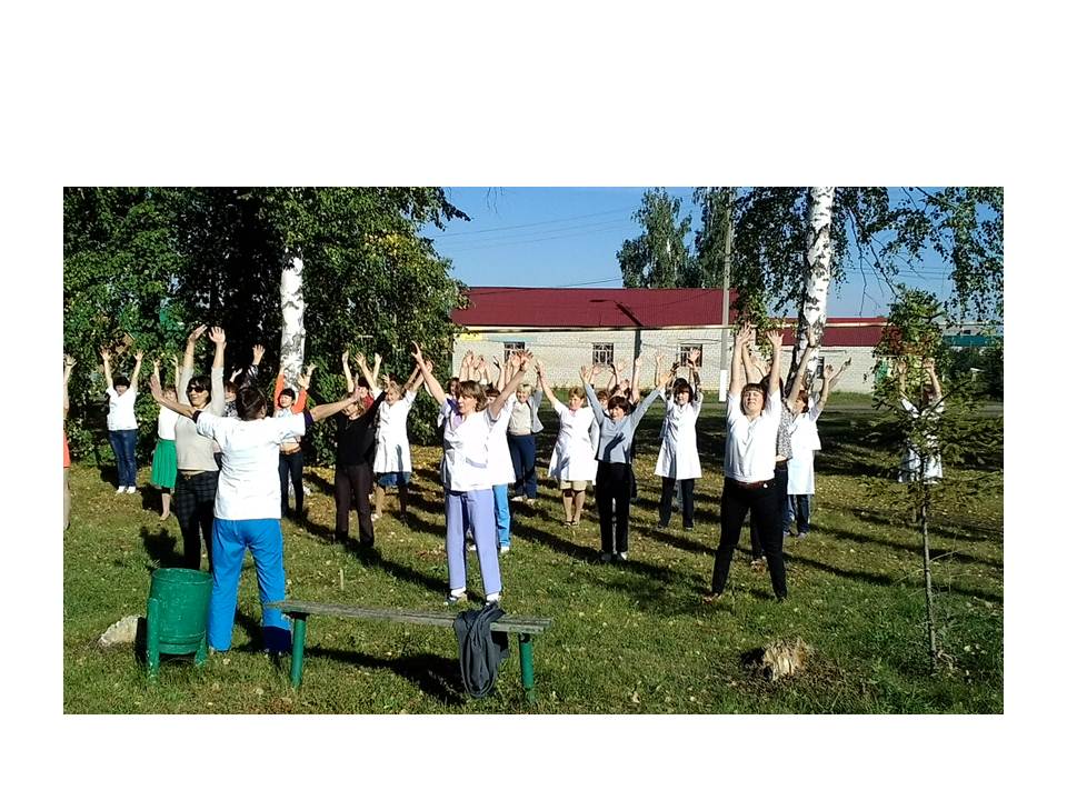 Сегодня,10 сентября 2015 года,в честь недели "Доброты" работники ГАУЗ"Нурлатской ЦРБ" начали свою трудовую деятельность с утренней зарядки.