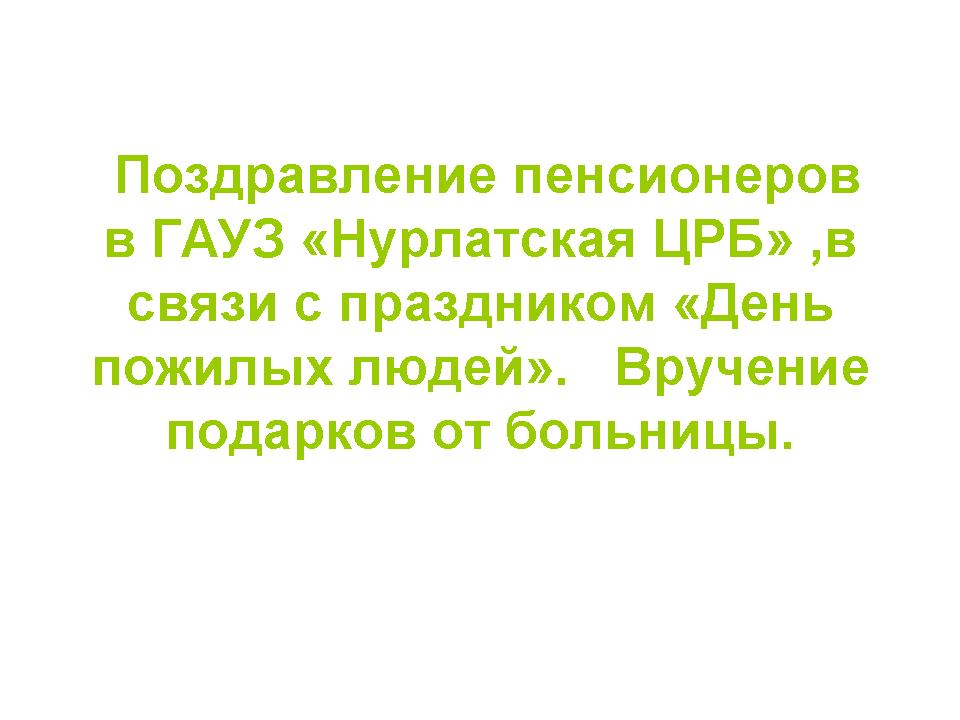 26 апреля 2018 года представители ГАУЗ "Нурлатская ЦРБ" поздравили вдов ветеранов ВОВ Надежду Петровну и Марьям Халиулловну от руководства и коллектива с наступающей 73-летней годовщиной Победы в Великой Отечественной войне 1941-1945гг. Ветеранов тепло и сердечно поздравили, вручили поздравительные открытки и небольшие подарки.