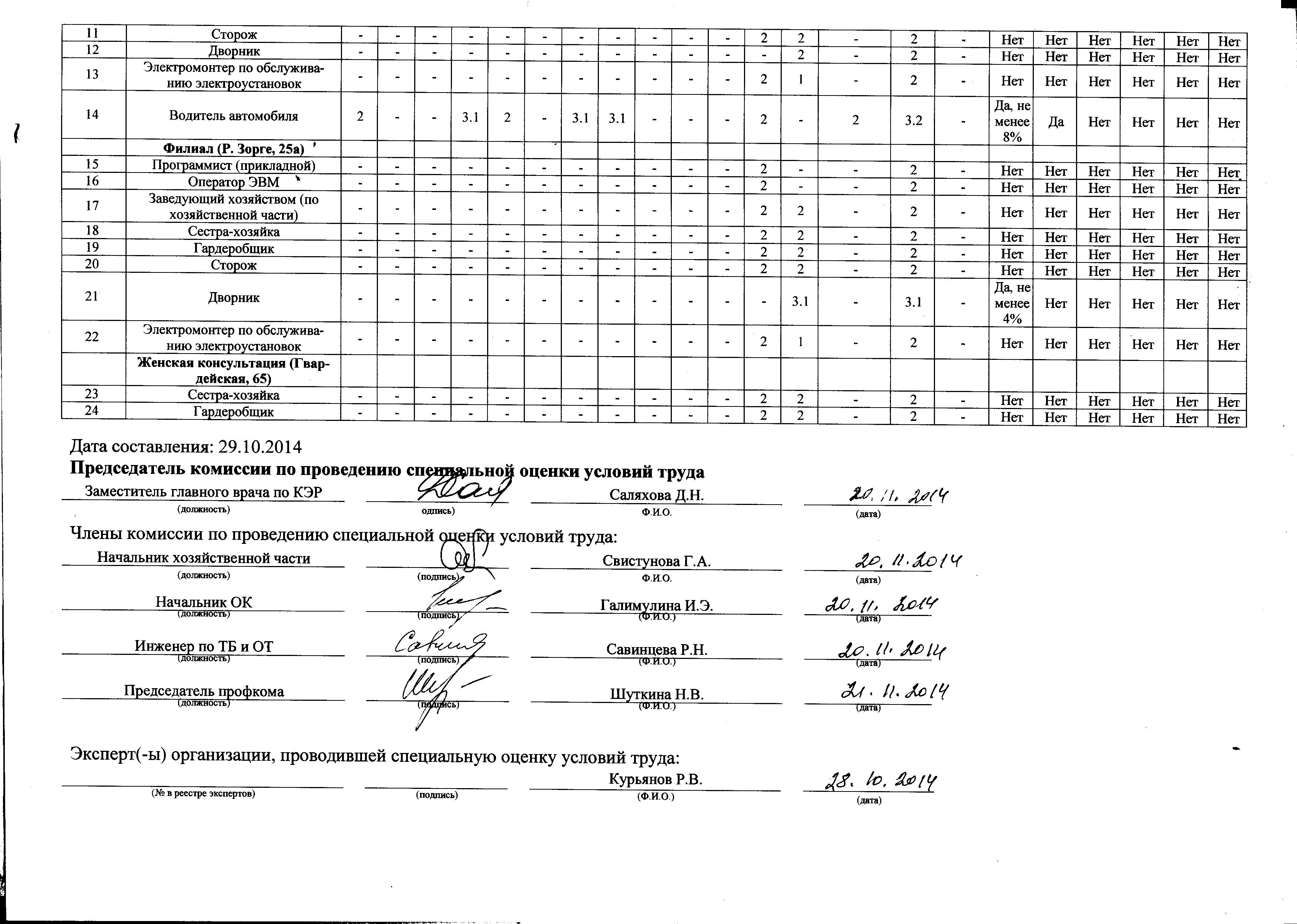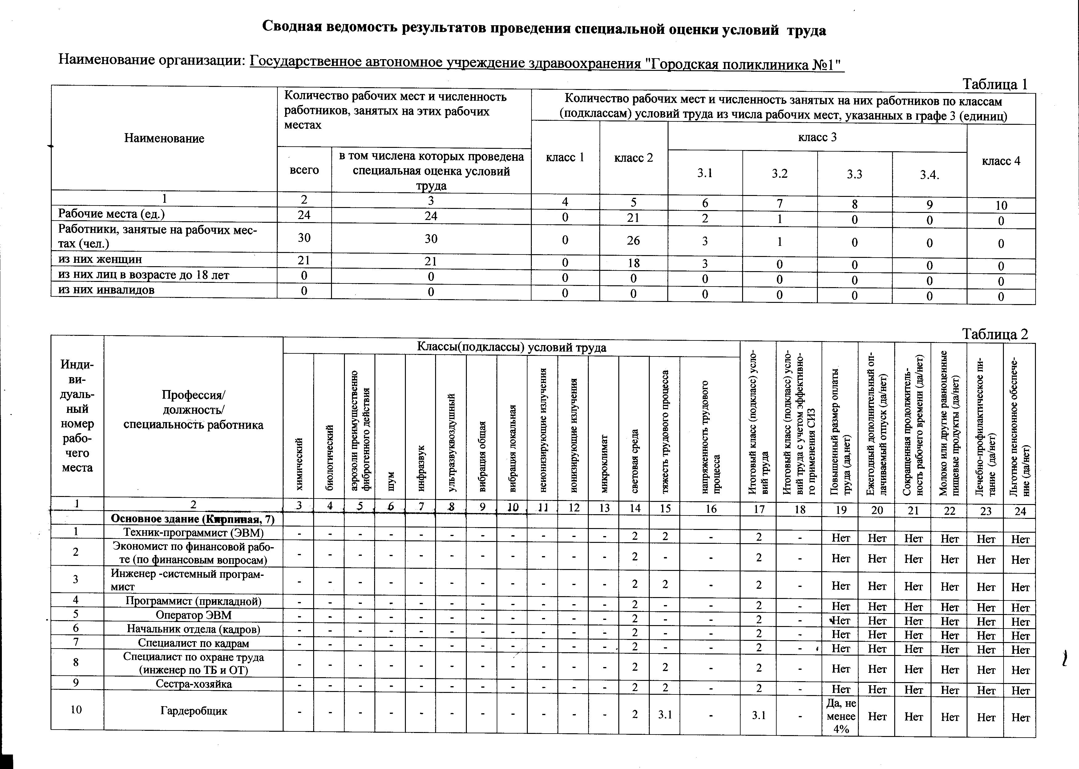 Результаты проведения оценки условий труда - 1
