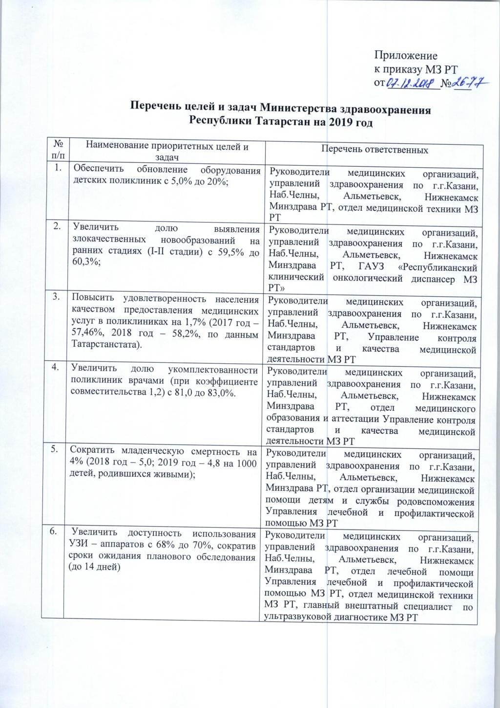 Перечень целей и задач Министерства здравоохранения РТ на 2019 год