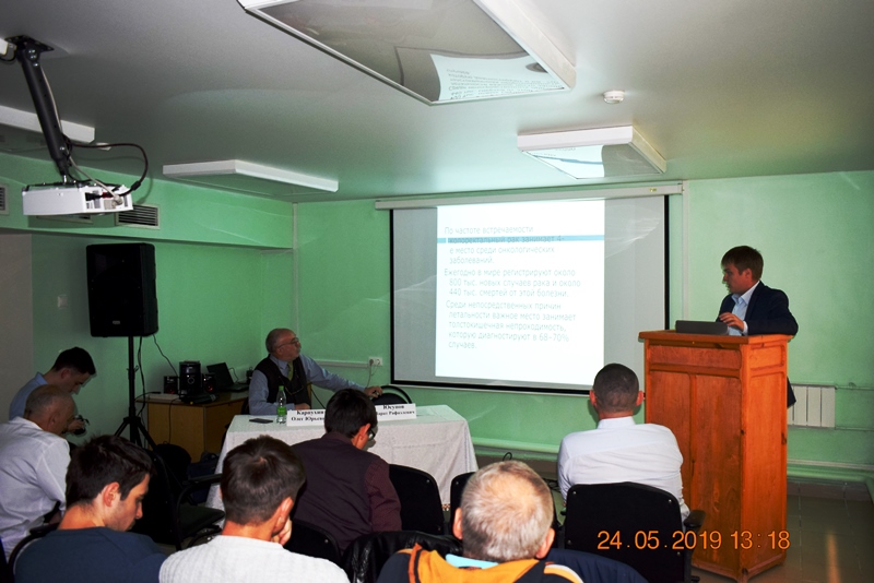 В своём докладе проф. Карпухин О.Ю. рассказал о современных аспектах диагностики и лечения дивертикулярной болезни ободочной кишки, необходимости использования национальных клинических рекомендаций в клинической практике. С докладом «Колоректальный рак: современное состояние проблемы» выступил заведующий отделением колопроктологии РКБ МЗ РТ Зиганшин М.И. В своём выступлении врач Шакиров Р.Р. представил опыт хирургического лечения пациентов с осложненным колоректальным раком по материалам отделения колопроктологии РКБ МЗ РТ. Ассистент кафедры, к.м.н. Шакуров А.Ф. выступил с докладом «Современные подходы к лечению острого парапроктита». Об алгоритме диагностики и лечения рефрактерного запора рассказал аспирант кафедры Сакулин К.А