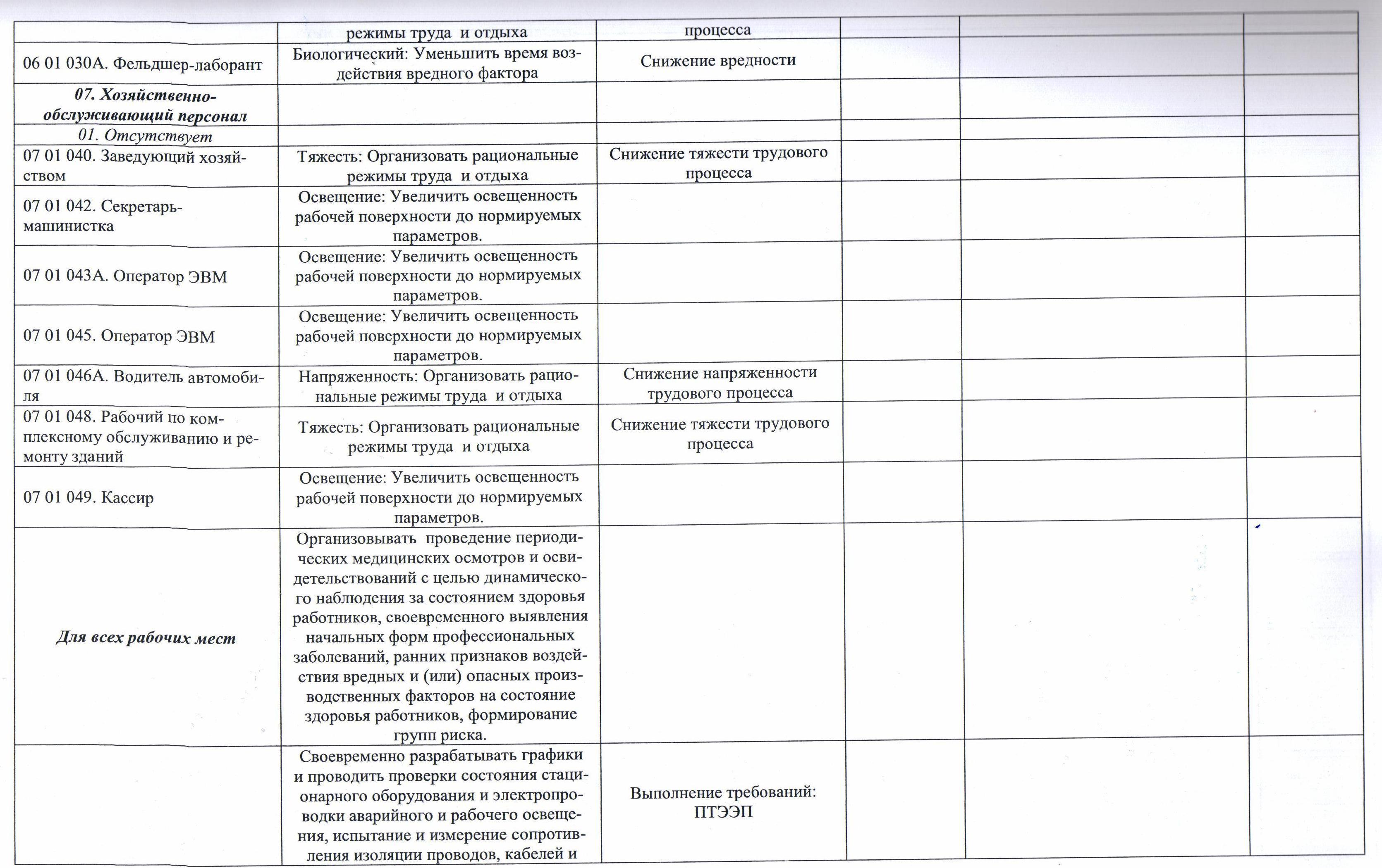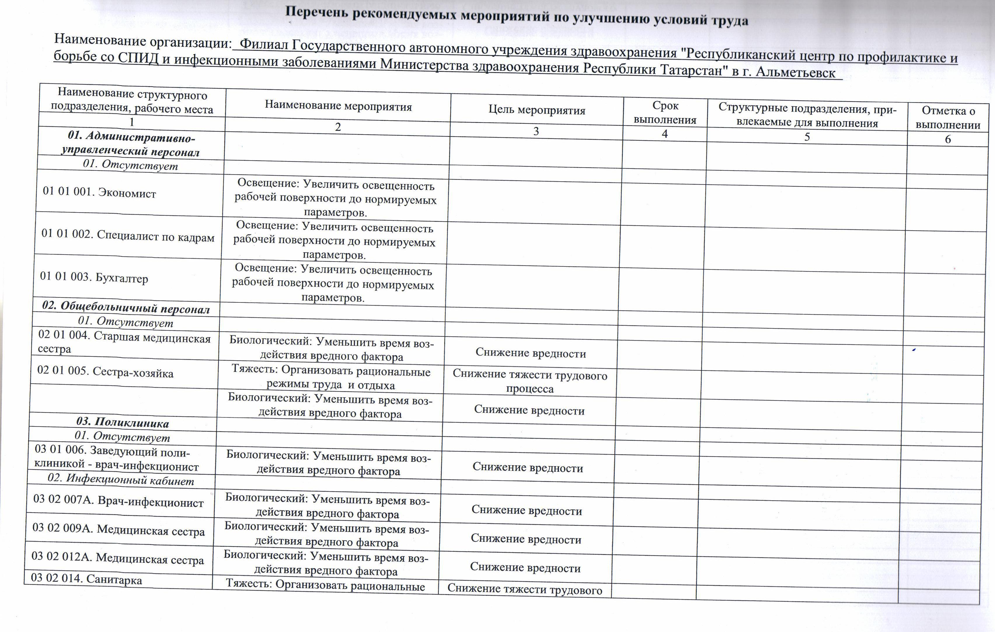 Перечень рекомендуемых мероприятий по улучшению условий труда 2019г.
