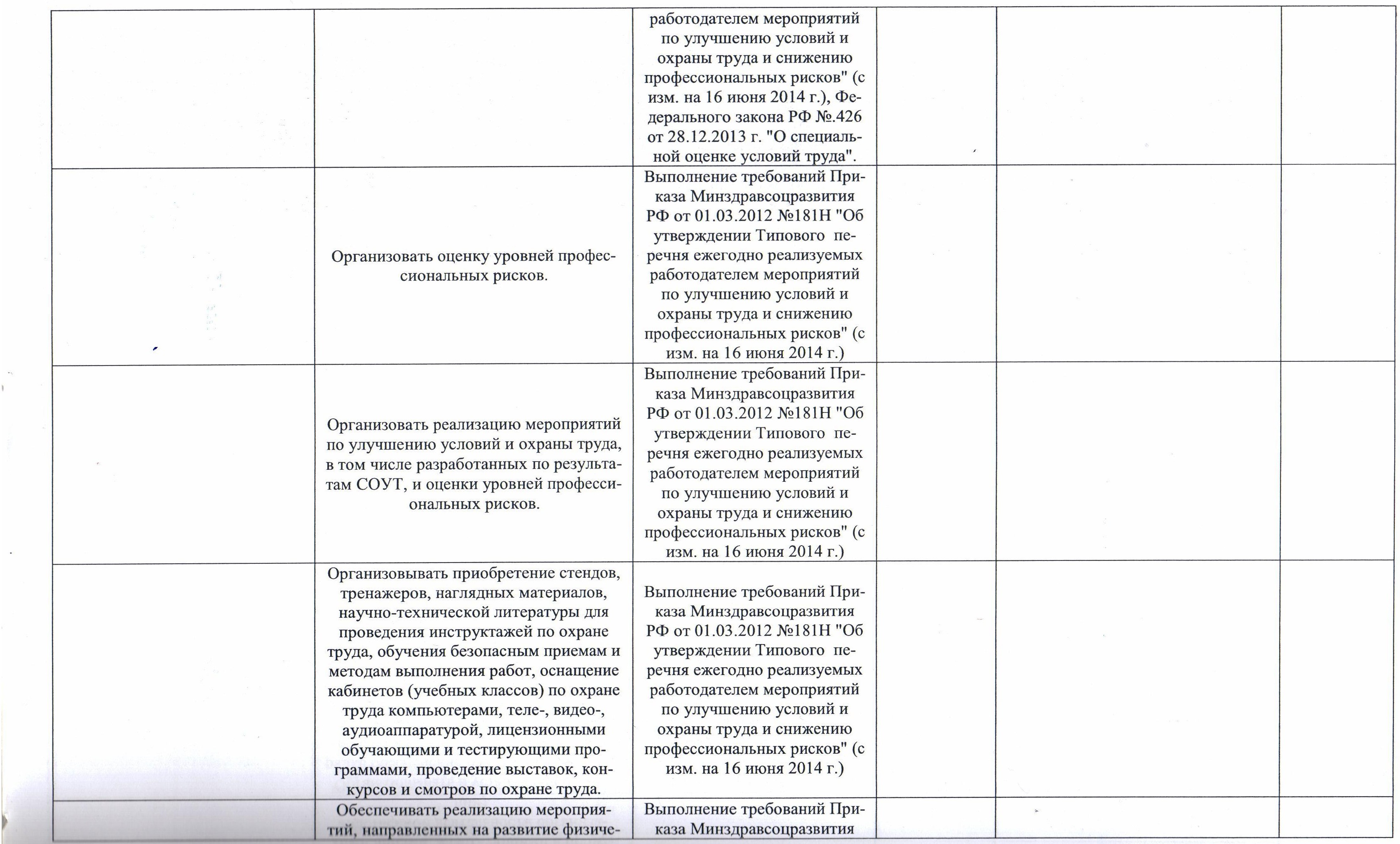 Перечень рекомендуемых мероприятий по улучшению условий труда 2018г.