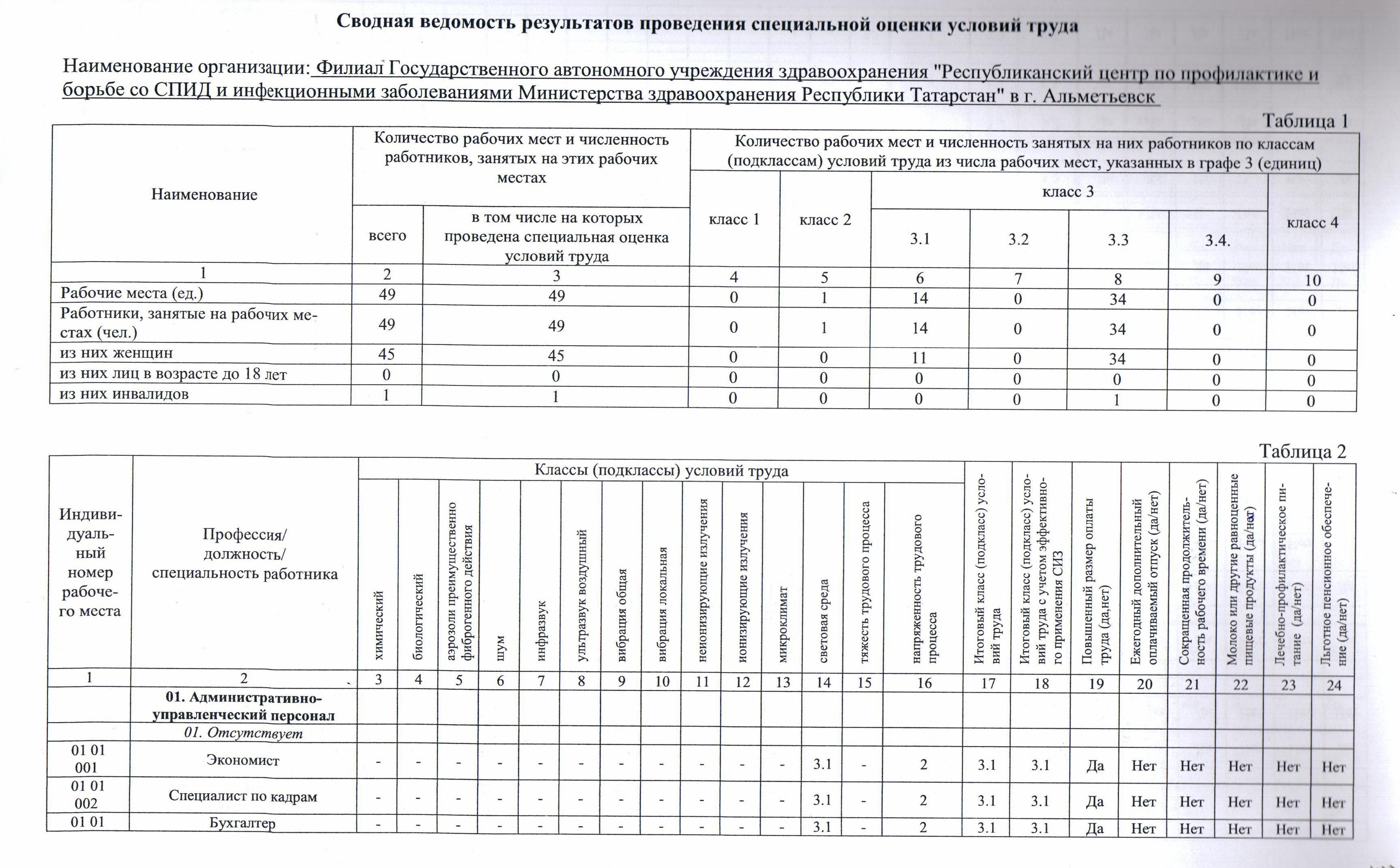 Сводная ведомость результатов проведения специальной оценки условий труда 2024 г.