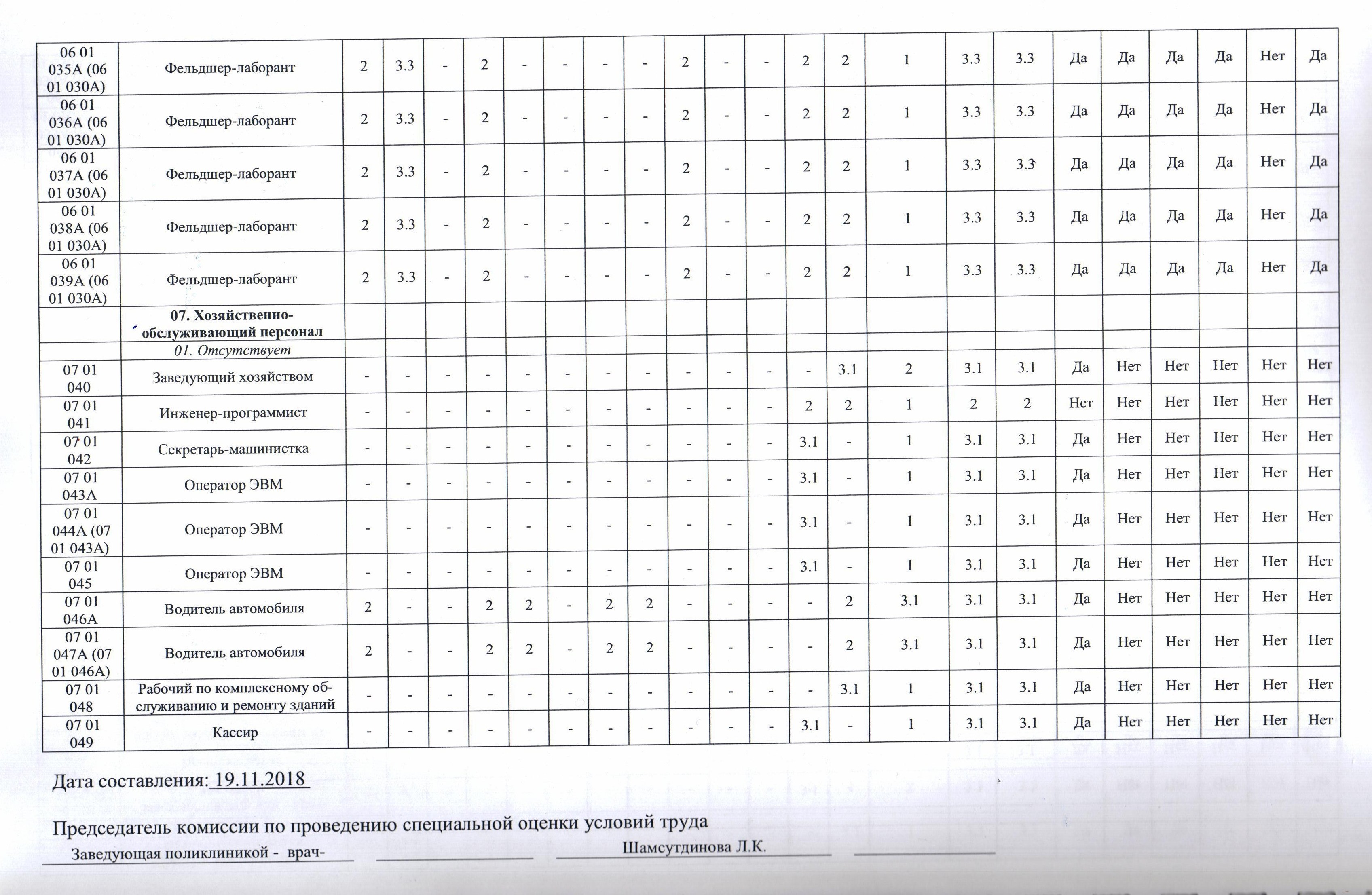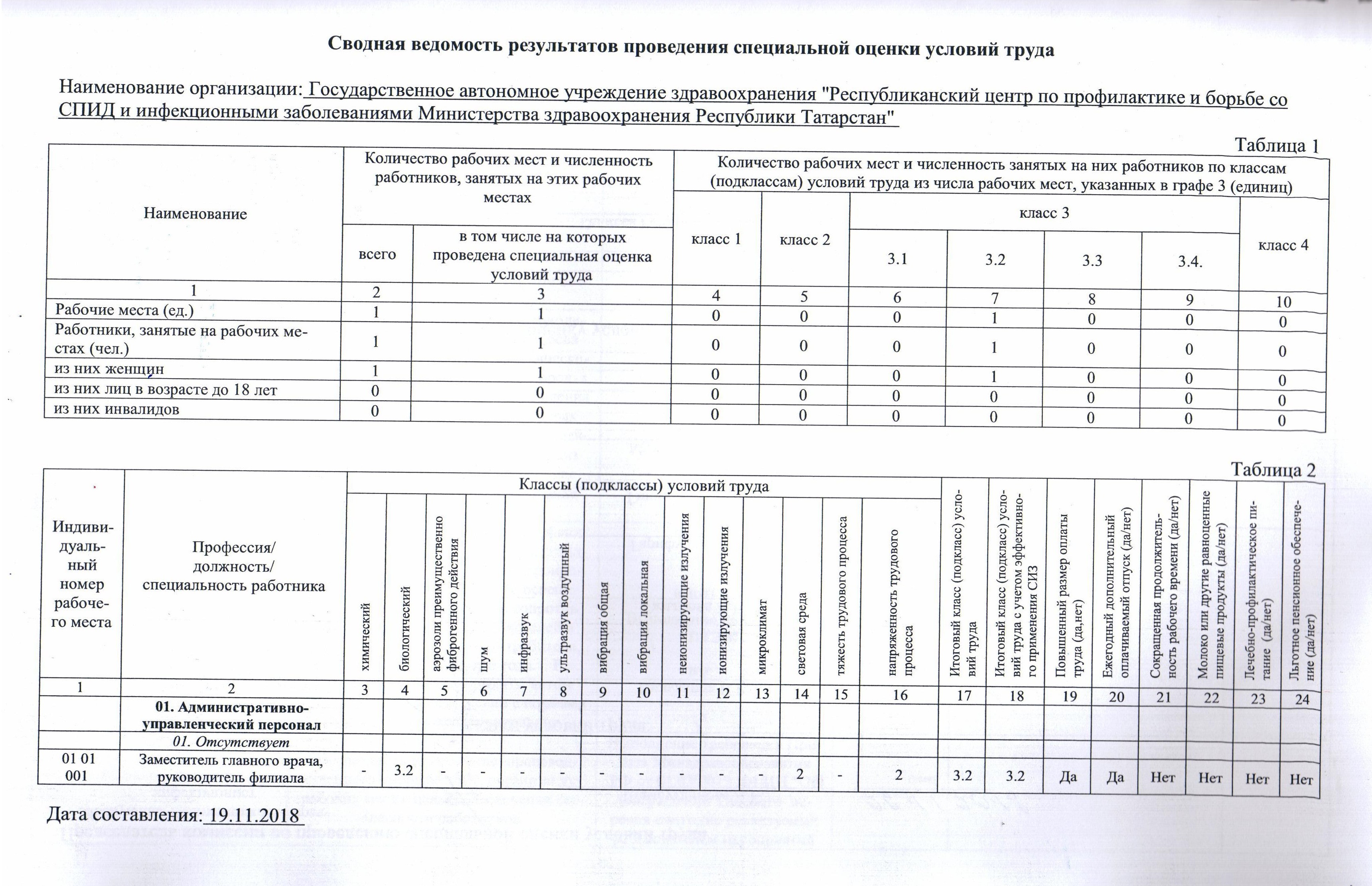 Сводная ведомость результатов проведения специальной оценки условий труда 2019г.