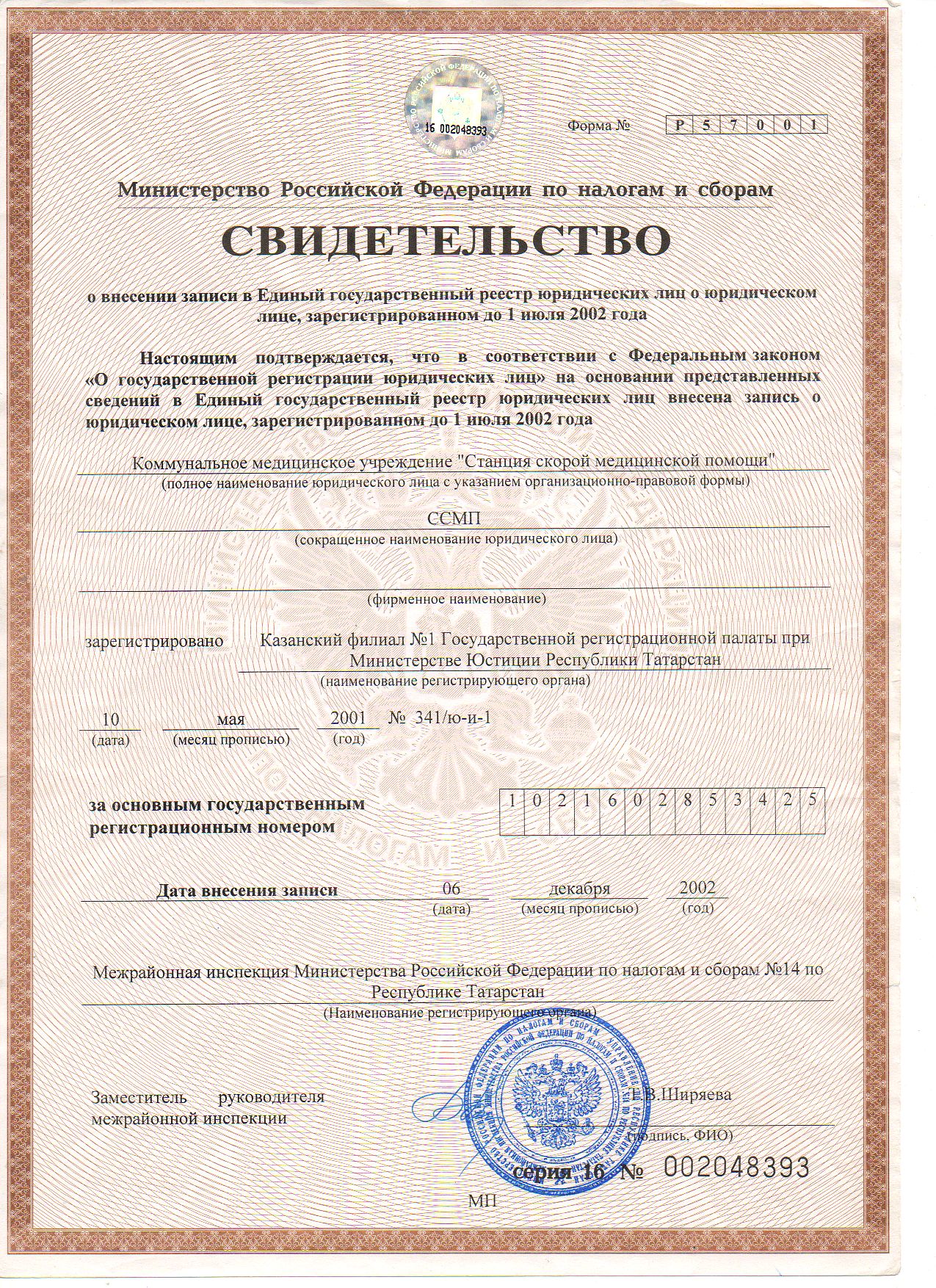 ОГРН: 1021602853425