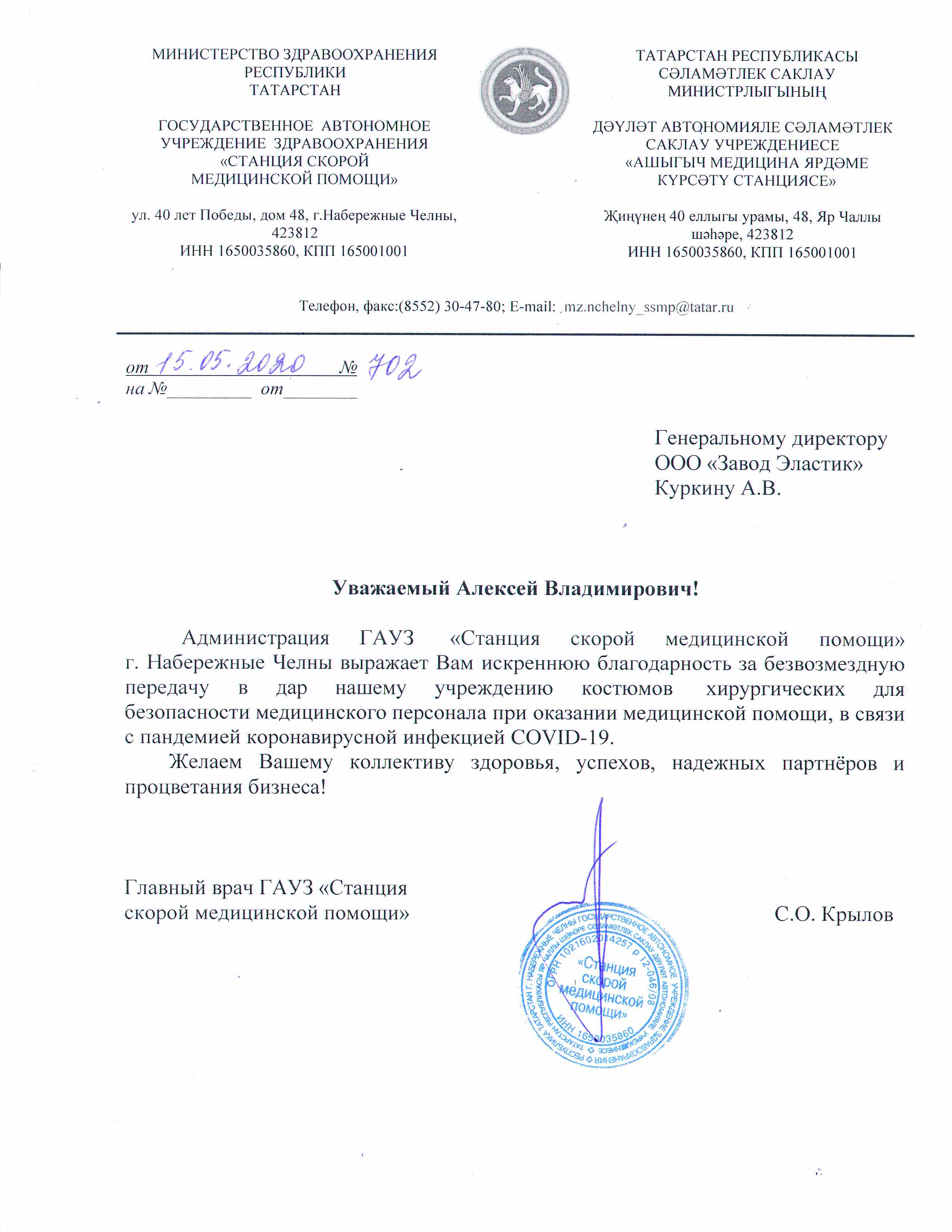 25.02.2020 состоялось расширенное заседание медицинского совета «Об итогах деятельности отрасли здравоохранения города Набережные Челны в 2019 году, задачи и перспективы развития в 2020 году. Начальник отдела кадров государственного автономного учреждения здравоохранения «Станции скорой медицинской помощи» Аникина Рената Расимовна награждена благодарственным письмом руководителя Исполнительного комитета за заслуги в области здравоохранения и успехи , достигнутые по итогам работы в 2019 году.