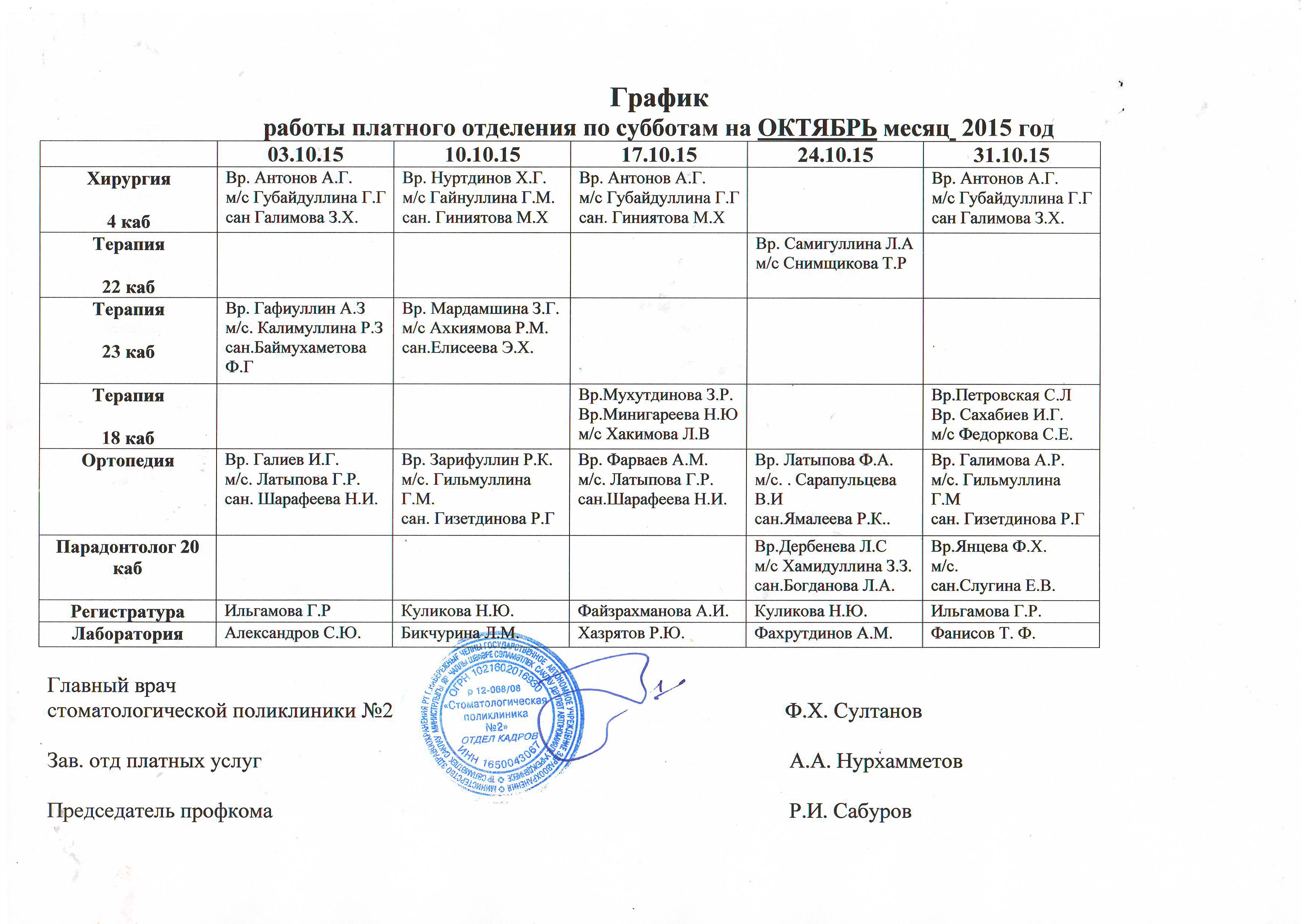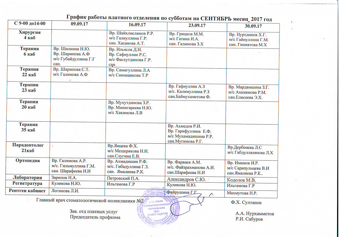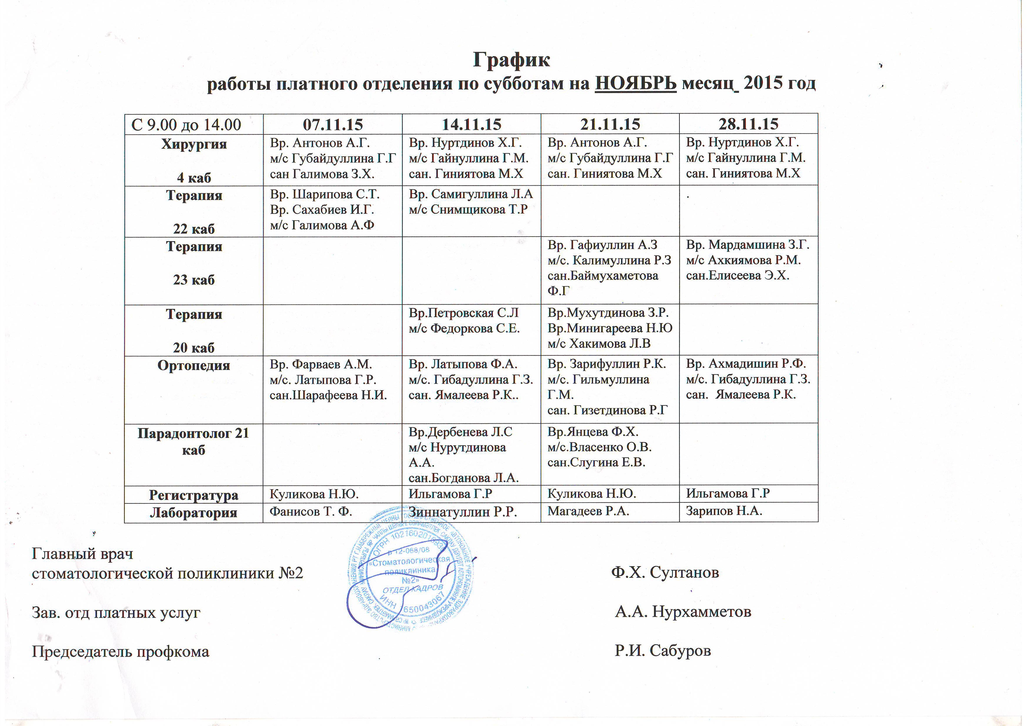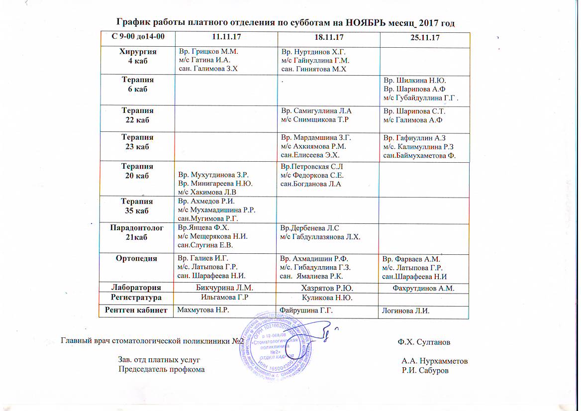 Отделение платных услуг работает по графику :