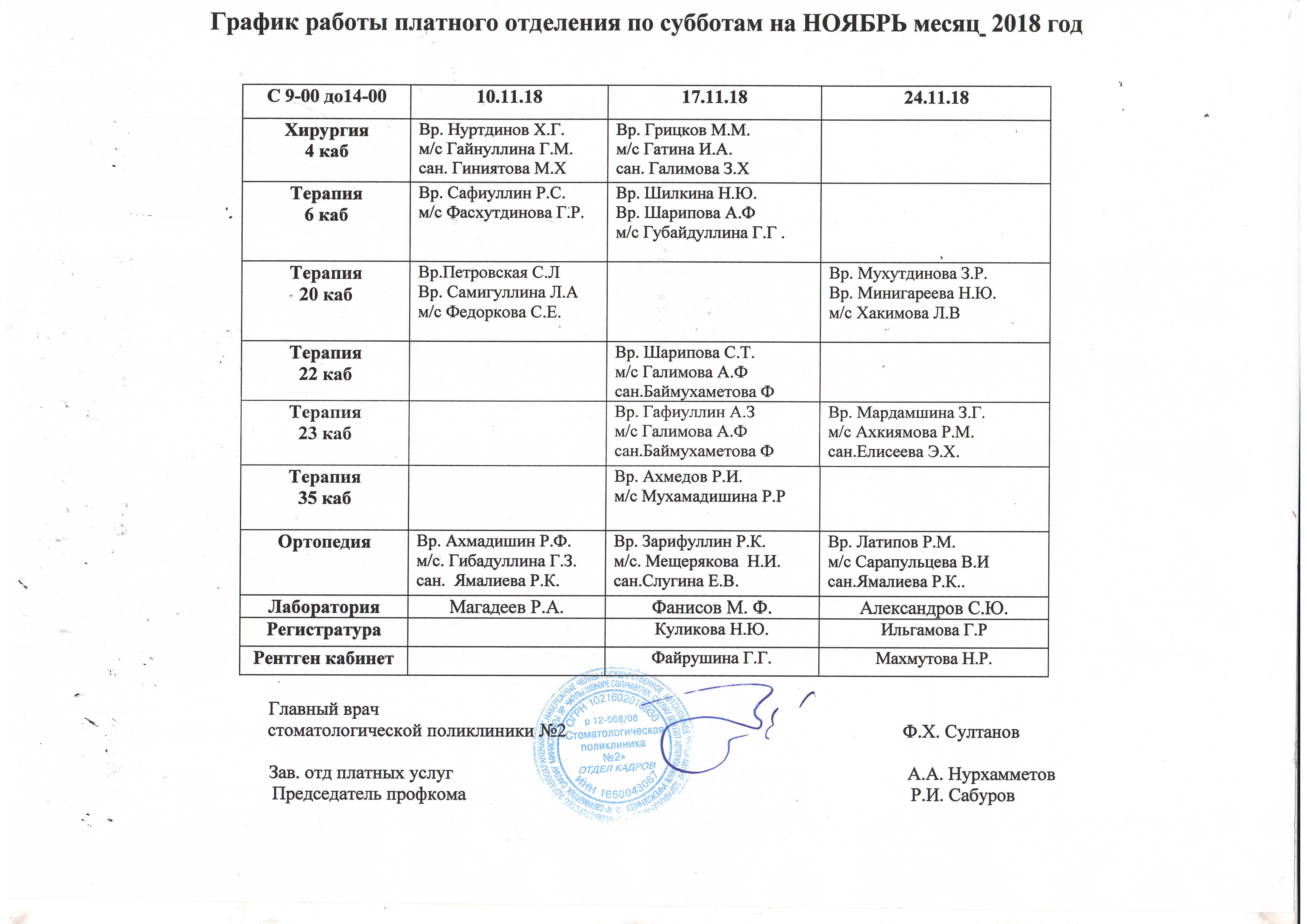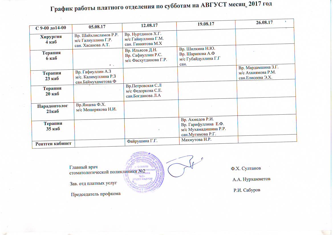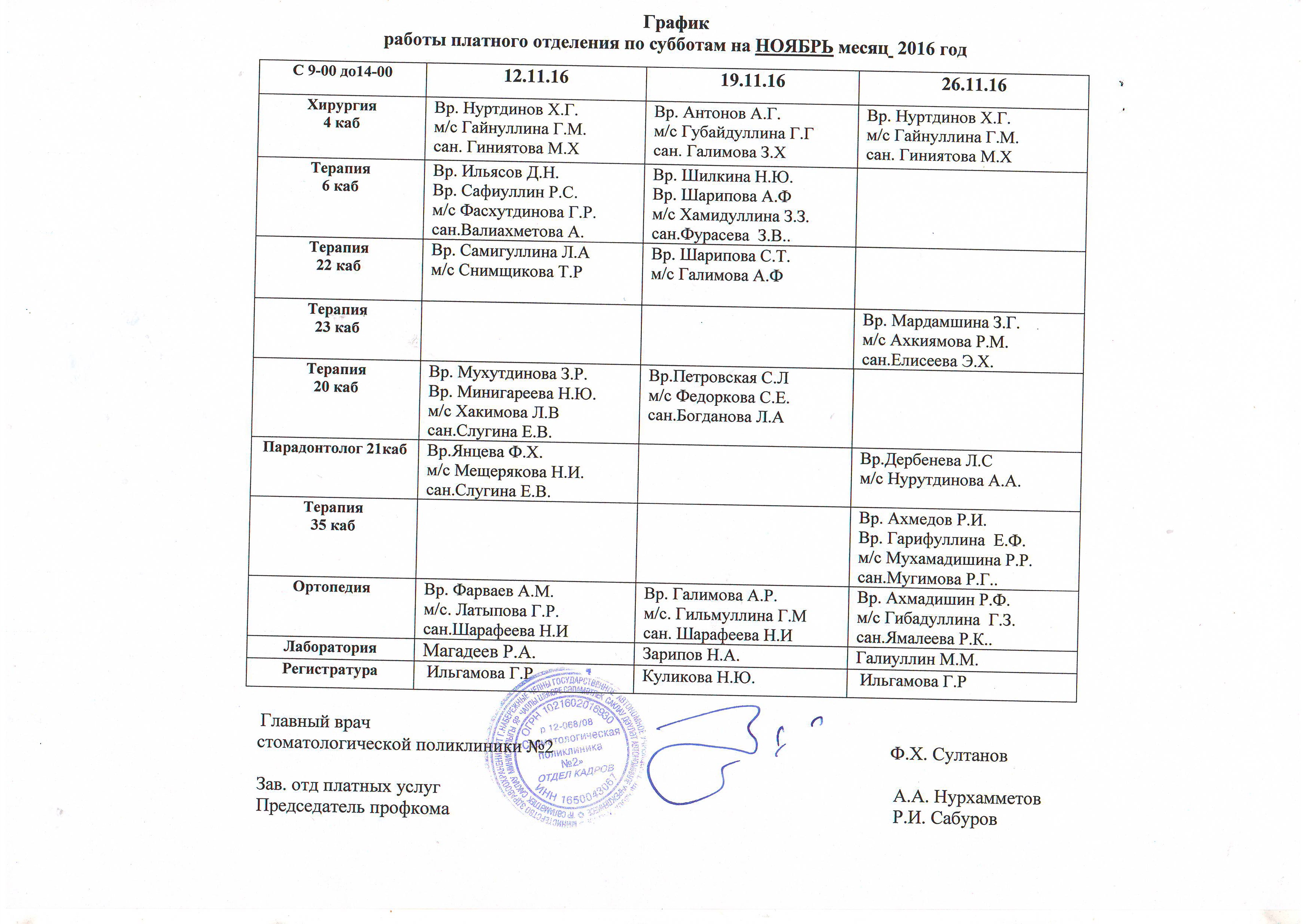 Отделение платных услуг работает по графику :