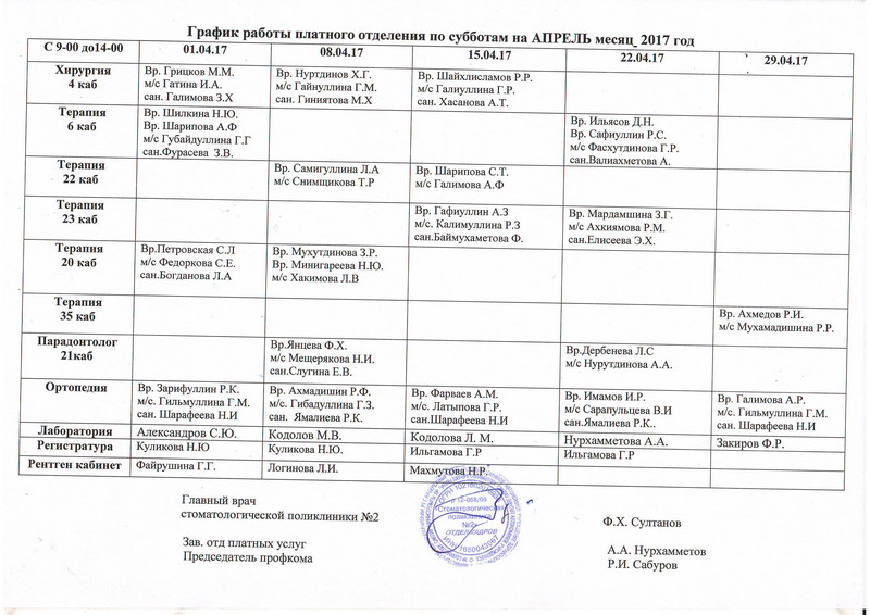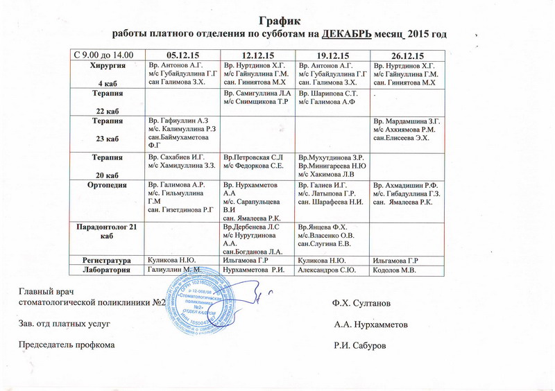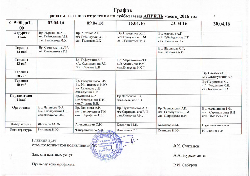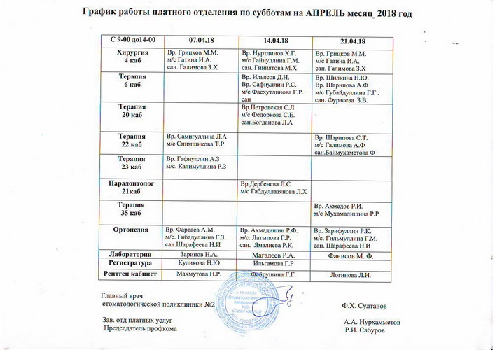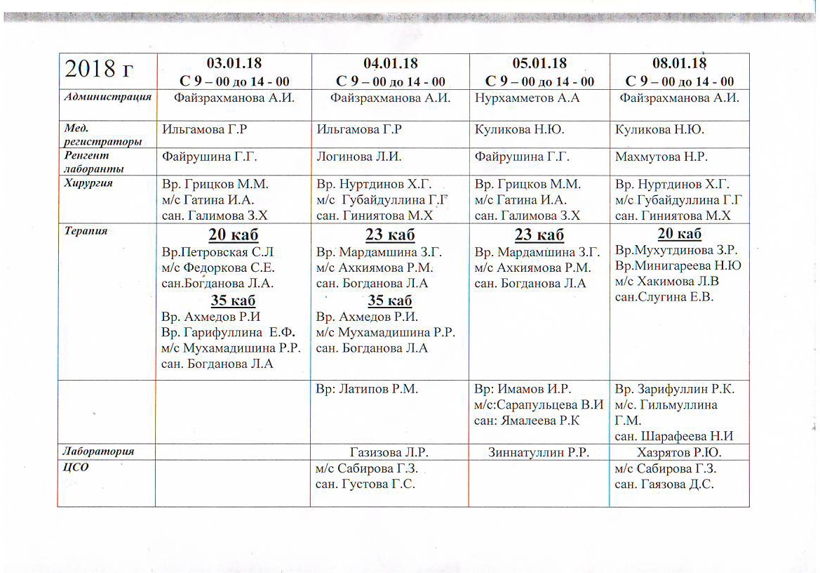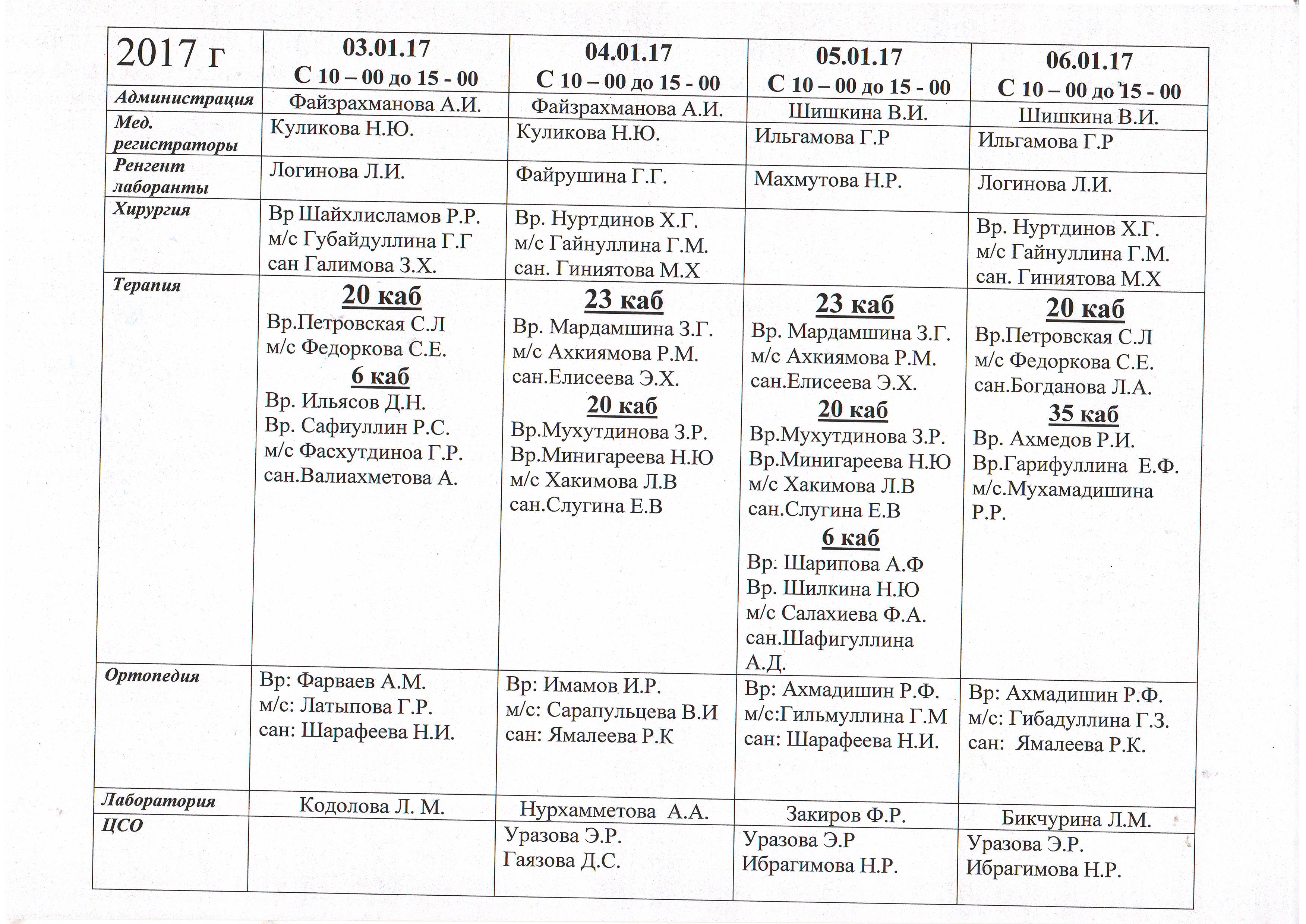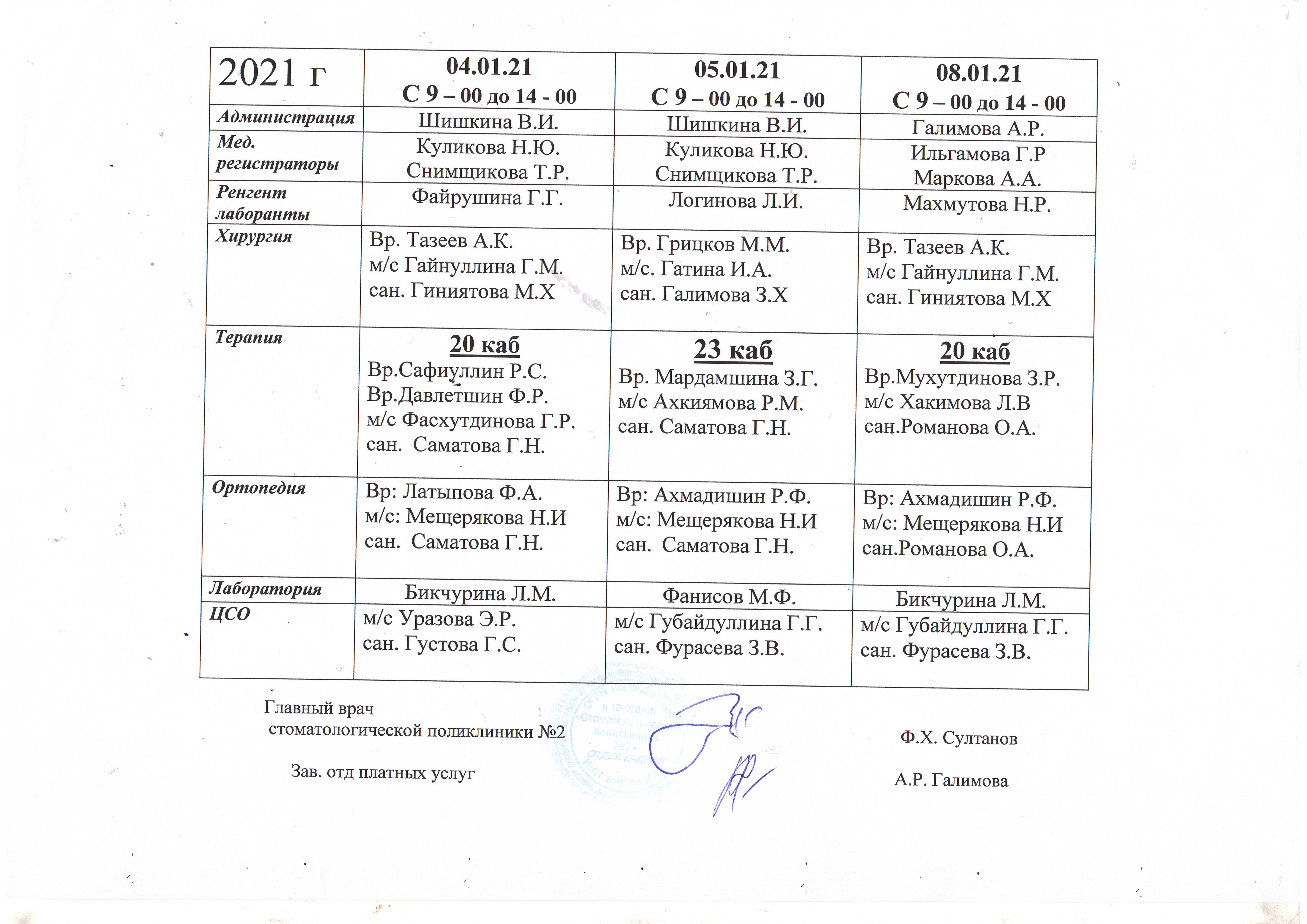 - Лечение зубов - 4 этаж, 21кабинет с 03.01.2023г по 04.01.2023год с 9.00 до 14.00 часов;