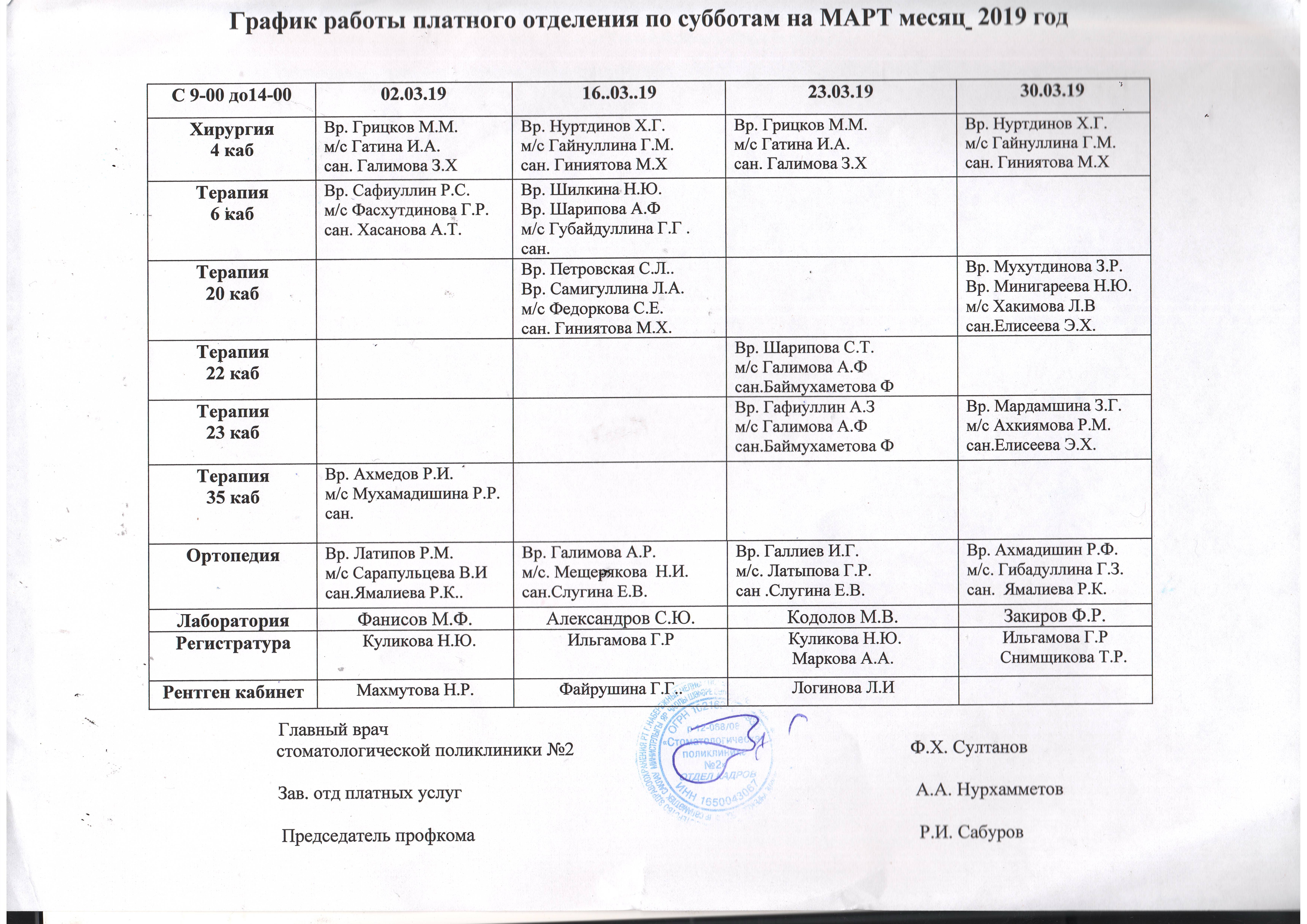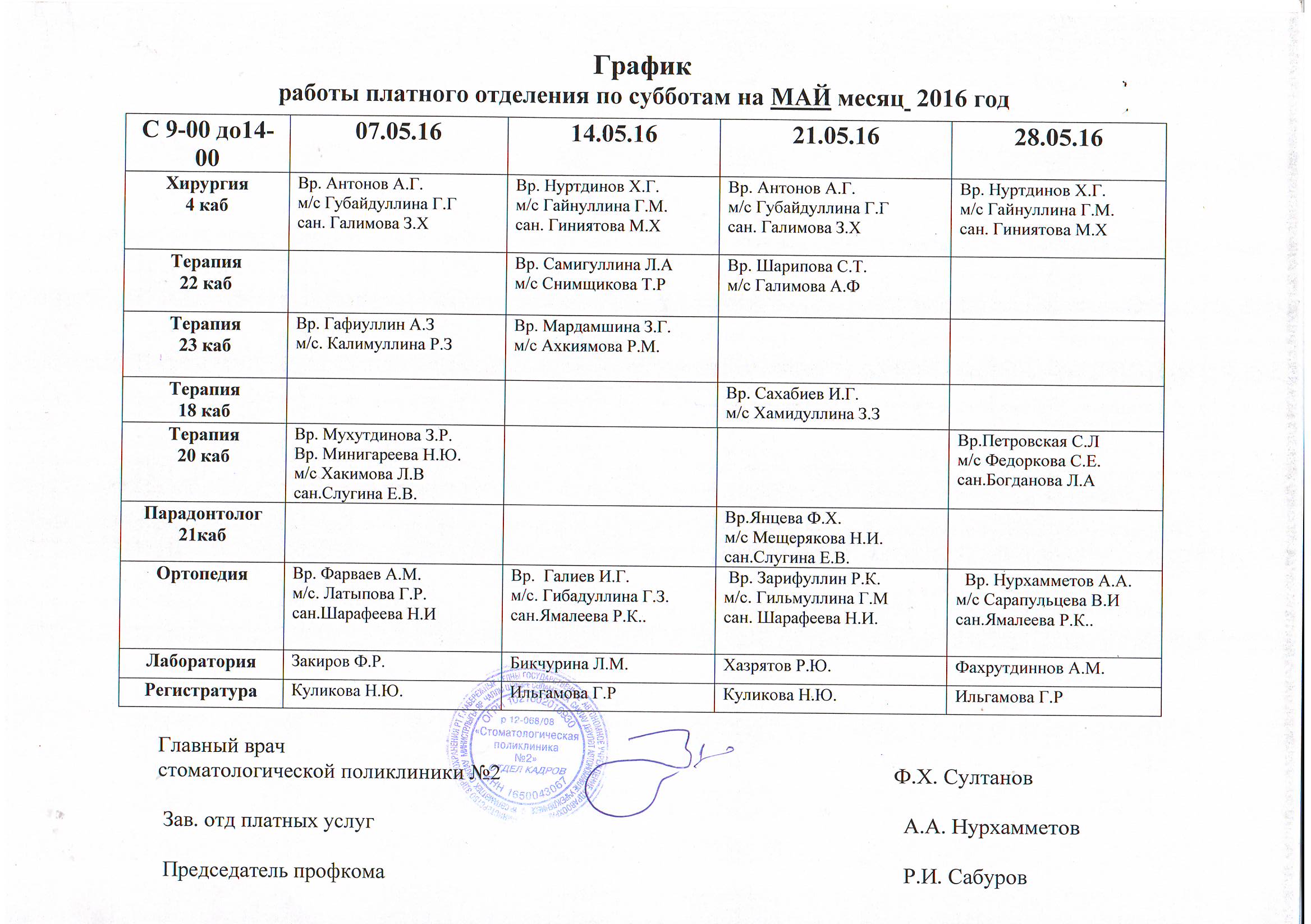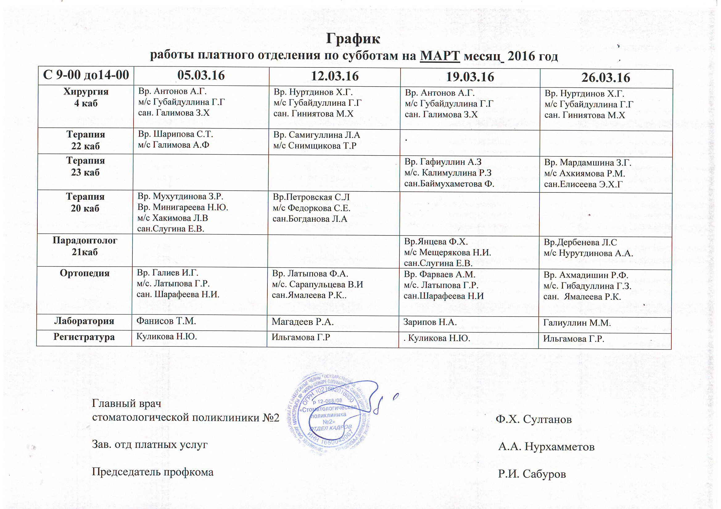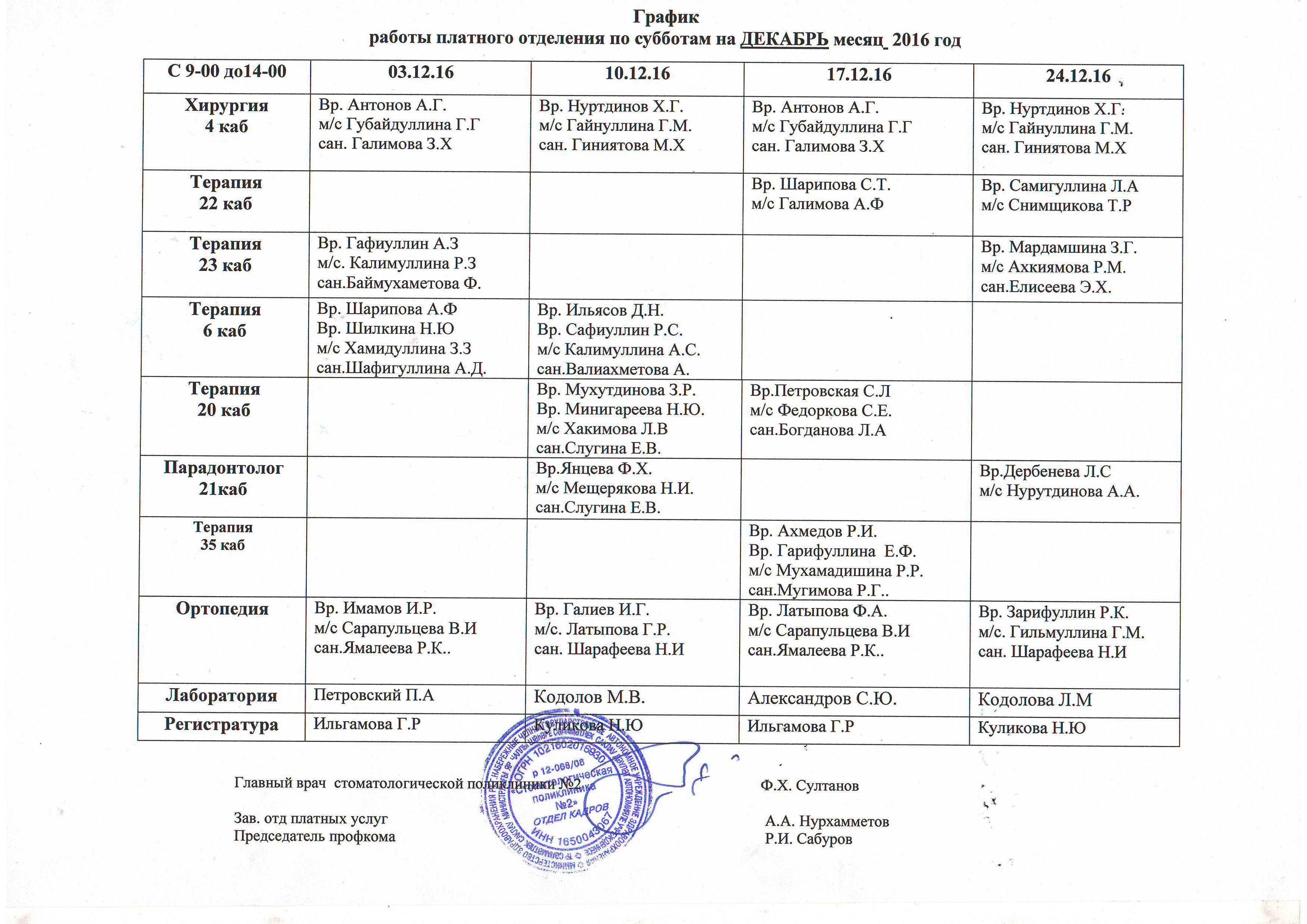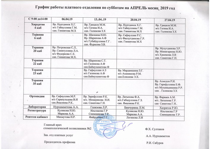- Лечение зубов - 4 этаж, 21кабинет с 03.01.2023г по 04.01.2023год с 9.00 до 14.00 часов;