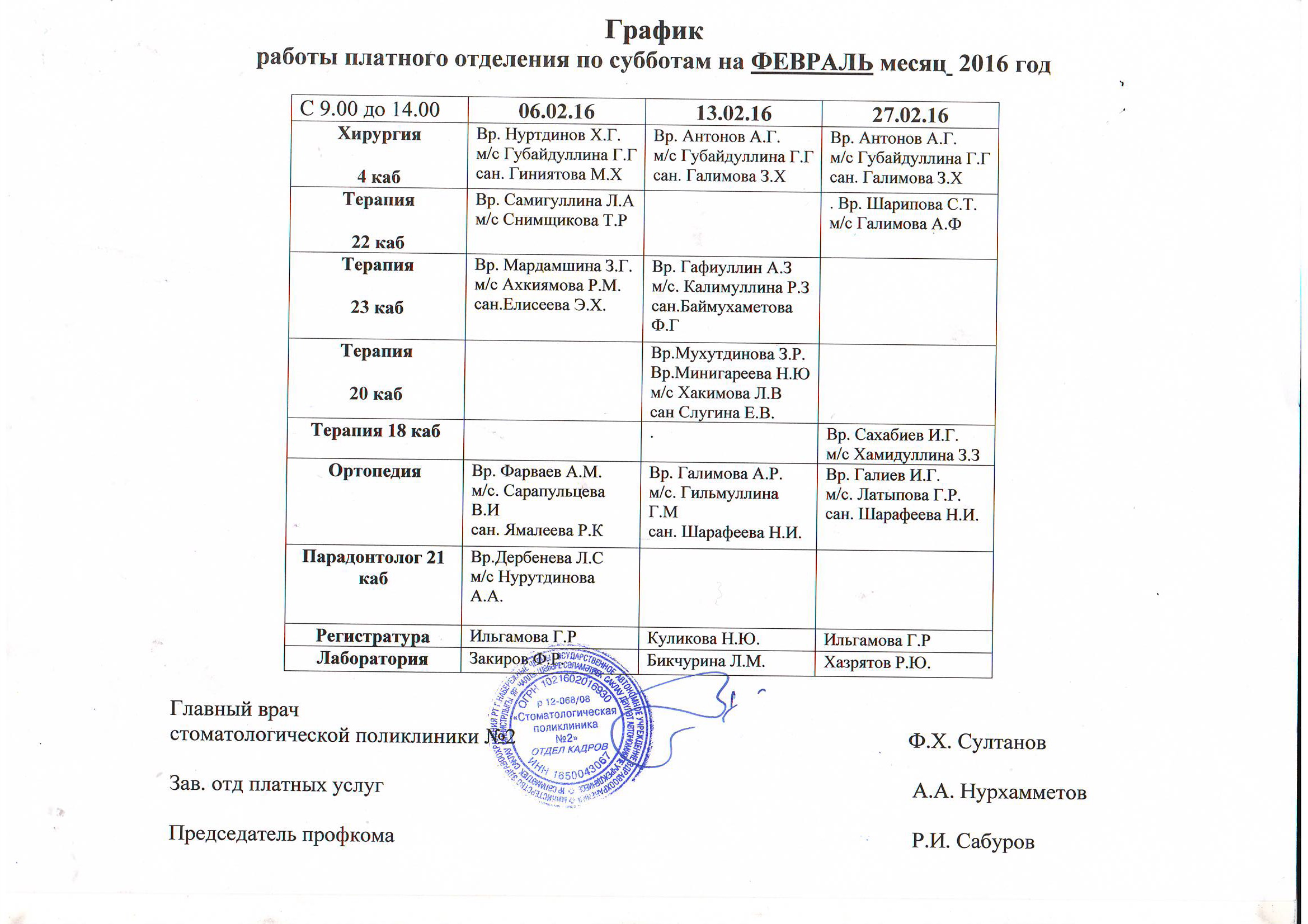 Об организации оказания стоматологической помощи населению с 23 февраля- по 26 февраля.2023год -в праздники День защитника Отечества -Пункт стоматологический помощи работает круглосуточно и оказывает неотложную стоматологическую помощь взрослому населению ( острая боль и от 18 лет) по принципу живой очереди по адресу город Набережные Челны ,проспект Московский дом 143 (2/03) , 2 этаж, 8 кабинет .
