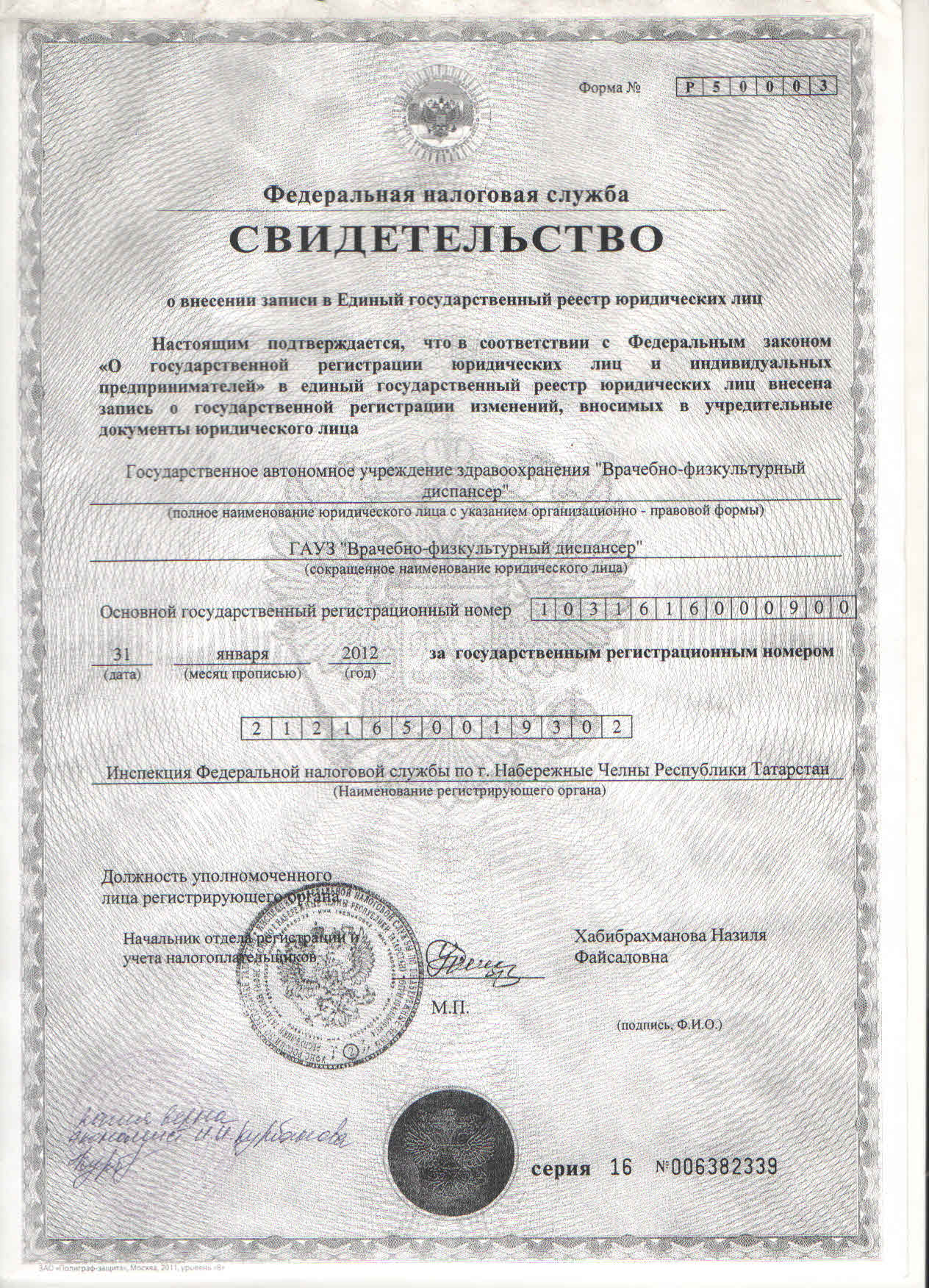 Государственное автономное учреждение здравоохранения "Врачебно-физкультурный диспансер" г. Набережные Челны