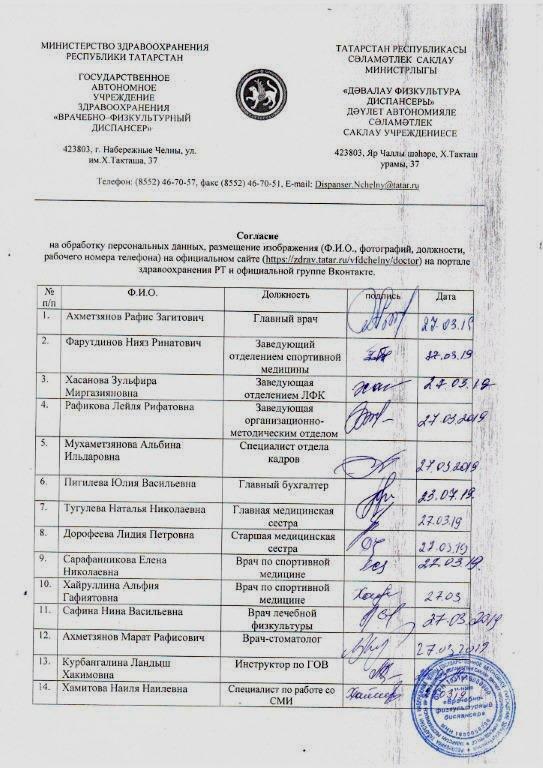 - наименование и адрес ГАУЗ «Врачебно-физкультурный диспансер» , получающего согласие работника;